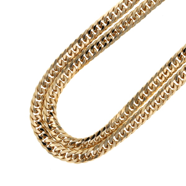| 商品紹介 | イエローゴールドを贅沢に使用した喜平チェーンネックレスです。 チェーンは、コマが二重に編み込まれた6面カットのダブルタイプで、全周に施された丁寧なカット加工が、地金ならではの重厚感と美しい輝きを最大限に引き出します。 イエローゴールドの明るい色合いがデコルテを華やかに演出します。 単独で着けても、ペンダントトップを通してご使用いただいても、存在感を放つ洗練されたジュエリーです。 流行に左右されない確かな品質と価値を持つ一本です。 |