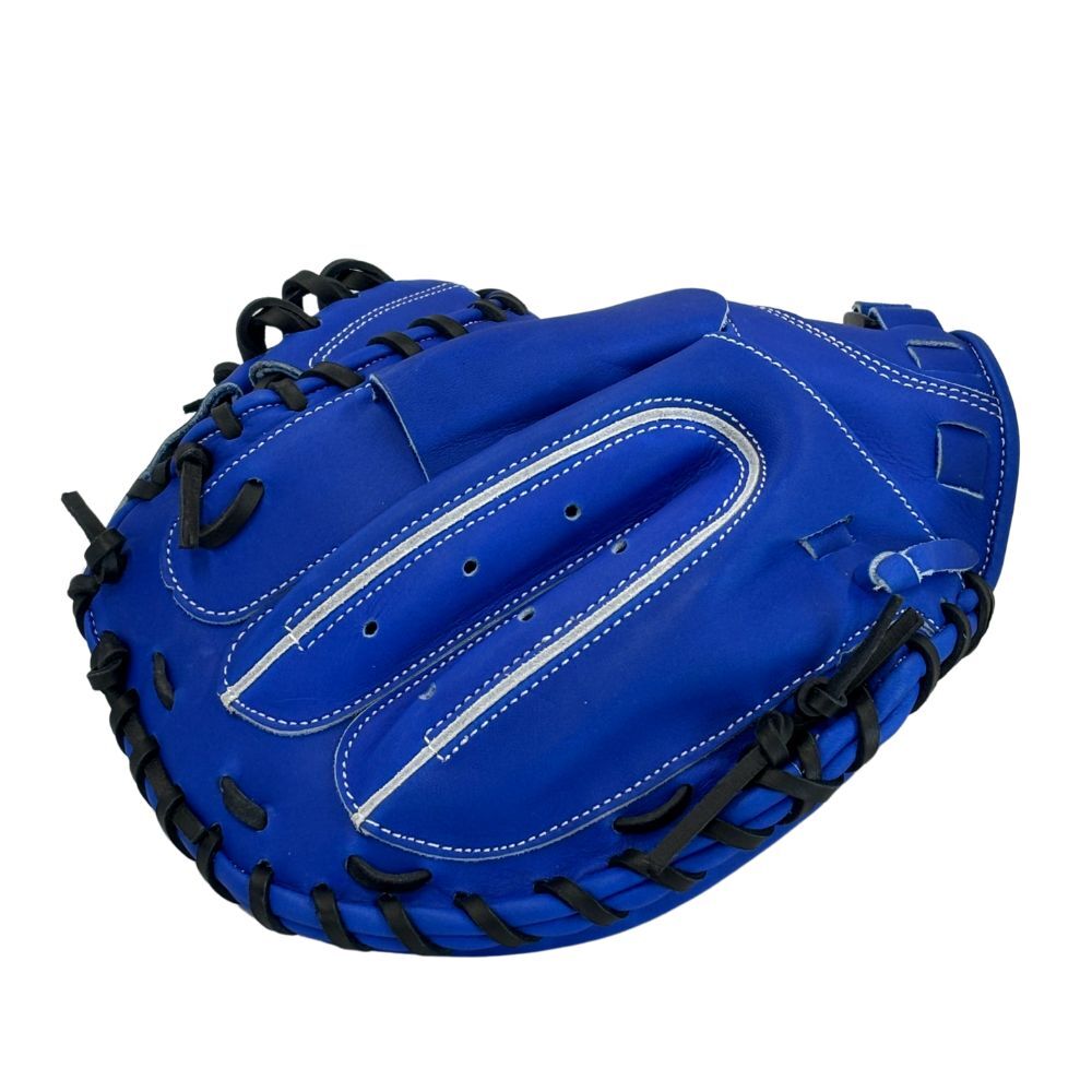 【このミットの大きさの目安】●青線は親指側の長さ、黄線は小指側の長さを示しております。(1インチ=2.54センチ) ※天然皮革のため、革の伸び等で多少誤差が生じる場合もございます。 |