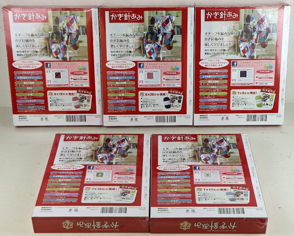 | S●未使用品●週刊マガジン ステップ・バイ・ステップでマスターする かぎ針あみ 73/74/75/76/77 5冊セット Hachette/アシェット ※未開封 | |