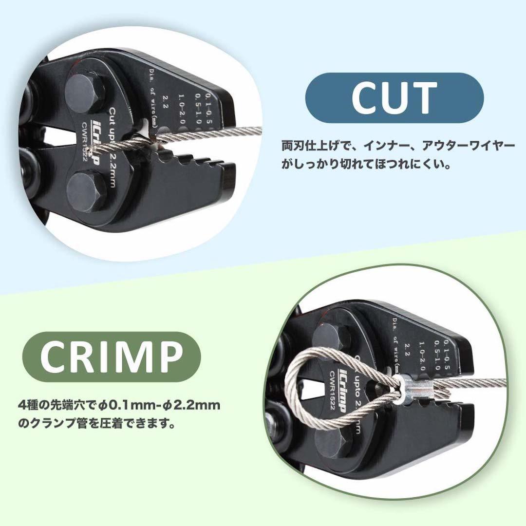 直径がφ0.1mm〜φ2.2mmのワイヤーロープの切断とクランプ(圧着)用。φ1.2mm〜φ2.0mmのアルミスリーブ計150点付きです。 こちらのハンドプレッサー CWR-1522は従来品(WX-250)と比べ、ラチェット機能およびラチェットロック解除機能を装備させて改良し、使い勝手がより良くなったものです。深海の大物、トローリングなどで大型青物を狙うワイヤー仕掛け、あるいは極太ナイロンの仕掛け作りに欠かせないスリーブ止めに必要なツール。 圧着能力:φ0.1〜0.5mm、φ0.5〜1.0mm、φ1.0〜2.0mm、φ2.2mm 商品長さ:170mm 重量:270g 用途:ワイヤーかしめ 適合スリープ:8文字型、丸型、楕円型のアルミスリープまたは銅製スリーブのロック加工用に。 適応スリーブサイズ :2N、3N、4N、5N(ナイロン20号~200号) ワイヤーカット対応:2.2mm迄 楕円型アルミスリーブセット内容: ・AOS-1.2(Φ1.2mm) 50個 ・AOS-1.5(Φ1.5mm) 50個 ・AOS-2.0(Φ2.0mm) 50個 用途:釣りワイヤー仕掛け、棚・額縁の吊り下げ、庭木の補正、アンテナ、看板の取り付けやタンス、食器棚の固定等に。 ※アイクリンプのワイヤー切断機CWRは全数切断テストを実施して出荷しております。切断テストにより刃に切断ワイヤー屑が残ることがございますがご了承くださいませ。 IWISS アイウィス「IWISS」はプライヤやペンチを主力とした工具類が販売され、ドイツやアメリカをはじめ、世界50か国以上で販売されているの人気ブランドです。 発売されたオープンバレル用圧着ペンチやワイヤペンチがEUやアメリカのECサイトでベストセラーランキングで何度も1位になっている大ヒット商品です。高品質な材料から作られたそれらの製品はその精度と実績から高い信頼を得ています。 | |||
