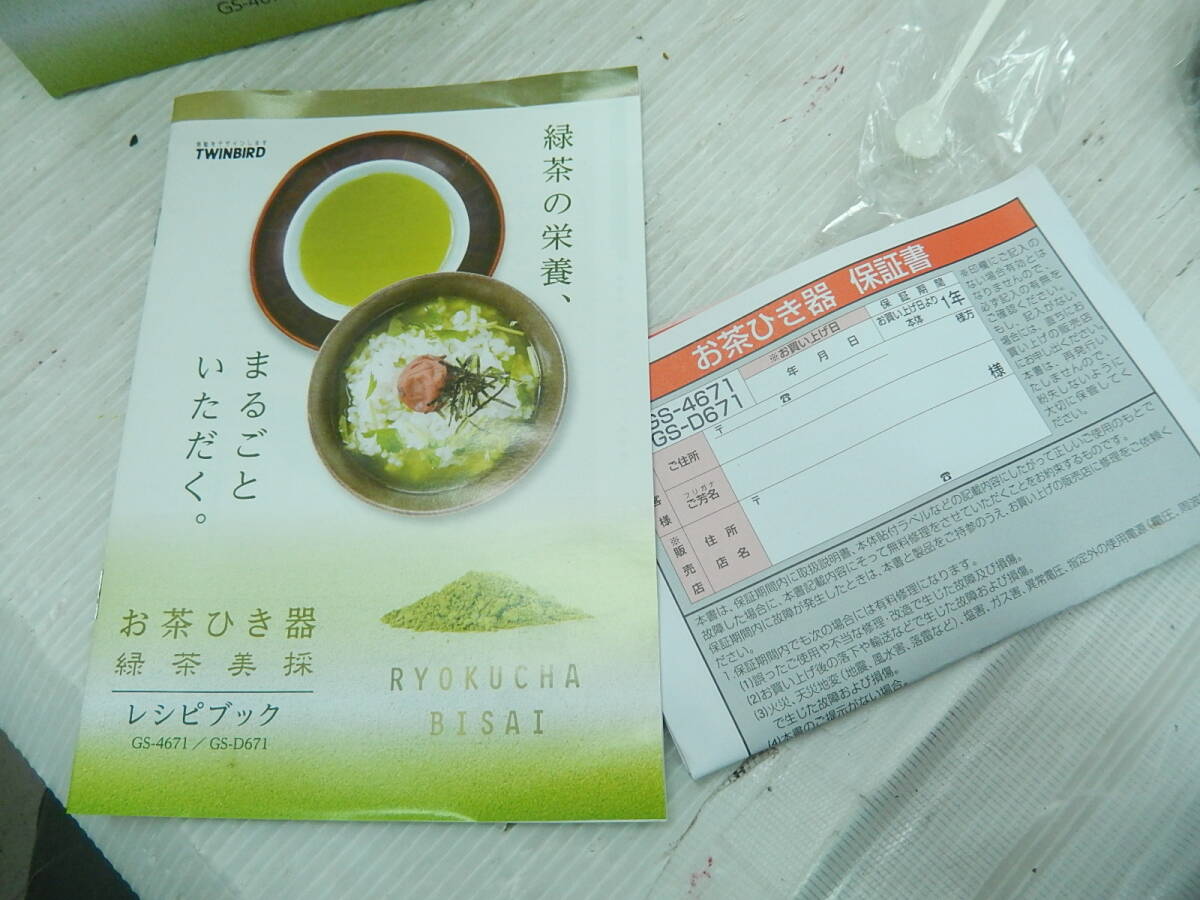※商品説明や画像ををよくごらん頂き、ご納得の上でのご入札をお願いいたします。 ■商品内容・状態 未使用 保管品 ツインバード お茶ひき器 GS-4671 ダークグリーン ※詳細スペックはメーカーHP等で確認下さい。 動作OK、回転する事を確認しました。 見た感じ、全体的にきれいで、 茶葉残りもないので未使用だと思います。 違ったらご容赦下さい。 ただ、本体上部のフタ上面に少しスリキズがあります。 (画像5枚目) 恐らく保管時に付いたものだと思います。 商品箱にはところどころ凹み跡があります。 商品は画像にある物が全てです。 (商品によっては一部欠品があるかも知れません。) 詳しくは画像にて、ご確認/ご判断ください。 一切ノークレームノーリターンでお願いします。 ※写真に撮りきれないキズ等あります。 気づかなかった点があるかも知れません。 ご容赦願います。 細かい事を気にされる方は入札をご遠慮下さい。 ノークレームノーリターンでお願いします。 ■出品物に関しての注意事項 ※中古品である事を御理解戴き入札を御願い致します。 その他不明な点は画像・メーカーHPより御確認・御判断を御願い致します ※ジャンク品および訳あり品と明記がある出品物に関しましては動作確認の取れていないもの、 故障しているがパーツ取りとして出品している商品になります。自己において 修理等できる方、もしくは『ジャンク・訳あり』商品を理解していただいている方のみの 御入札をお願い致します。 ※商品によりメーカー、販売元の保証期間が過ぎている商品がございます。 保証期間の過ぎている商品に関しましては、落札者様の自己責任において 御対応していただくよう御願い致します。 | ||||||||||||||||||||||||||||||||||||||||||||||||||||||||||||||||||||||||||||||||||||||||||||||||||||||||||||||||||||||