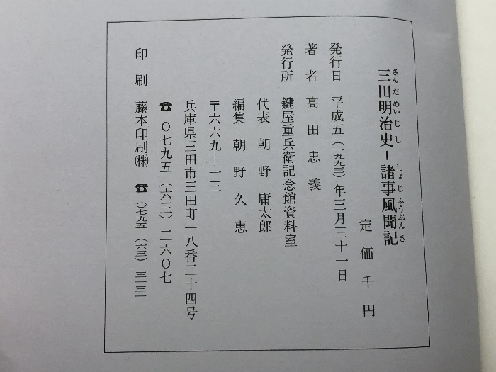 | 三田明治史 諸事風聞記 高田忠義 鍵屋重兵衛記念館資料室 | |