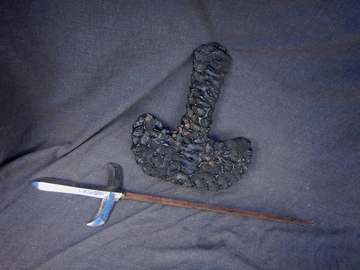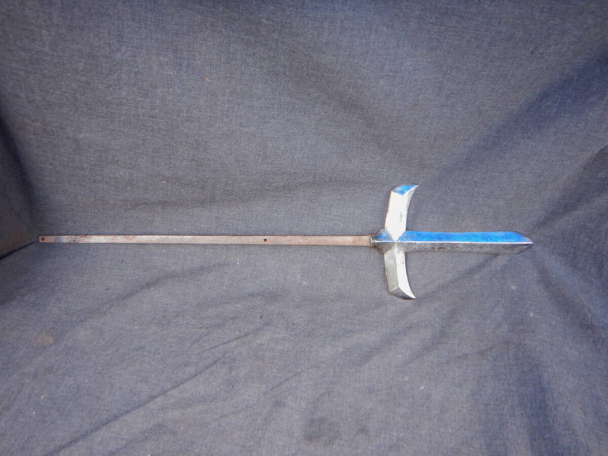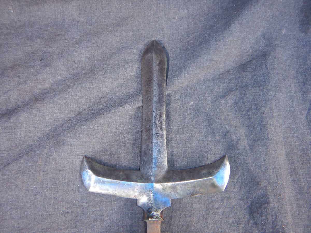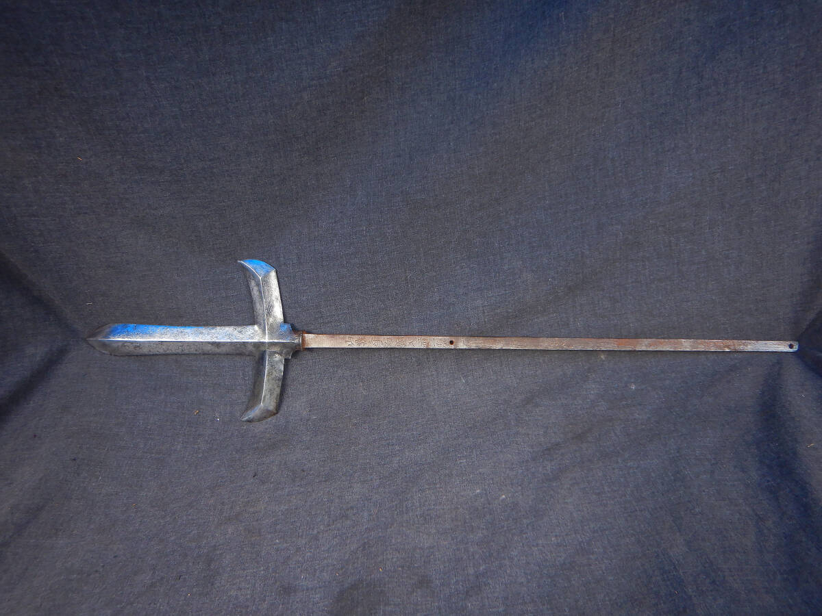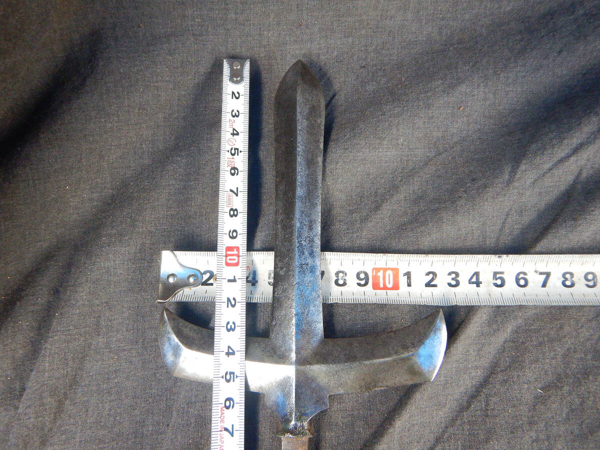 | 時代もの 槍 穂先 穂 十文字槍 銘:山城守百國入道一虎 江戸時代 鞘付き 日本刀 刀剣 刀 武具 | |