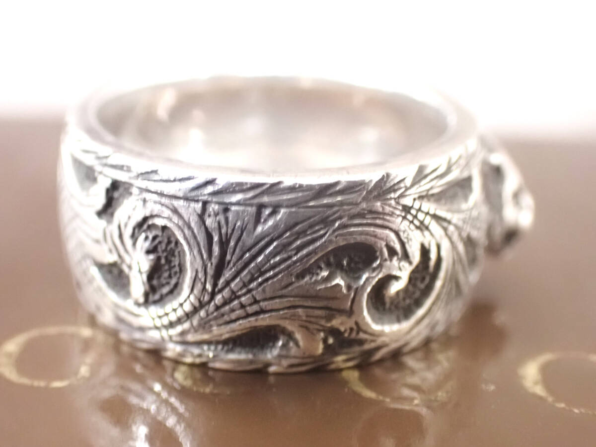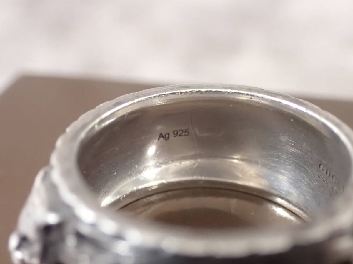 | コメント | グッチのキャットヘッド シルバーリングです。アラベスクの模様とキャットヘッドが施された、エイジングフィニッシュ シルバー リング。素材はシルバー925。シルバー特有の黒ずみがございますが、全体的にきれいな状態でございます。リングサイズは18号。重さは9.7gでございます。本商品の付属品は最後の画像全てでございます。発送時には緩衝材を巻いて丁寧に梱包し発送させていただきます。注文確定後は1~2日以内に発送いたします。(土日・祝日は発送業務をおこなっておりません)ぜひ、よろしくお願いします。 | |