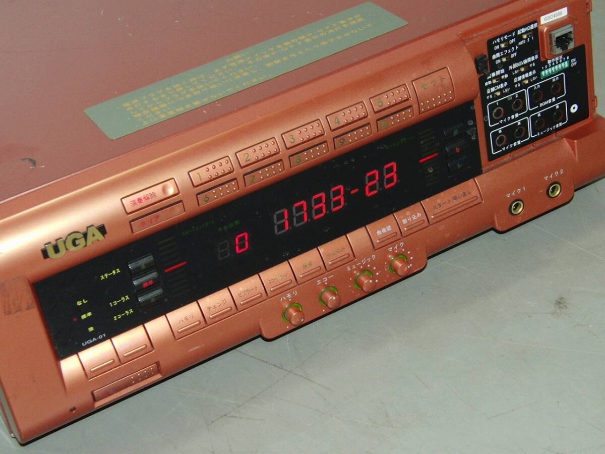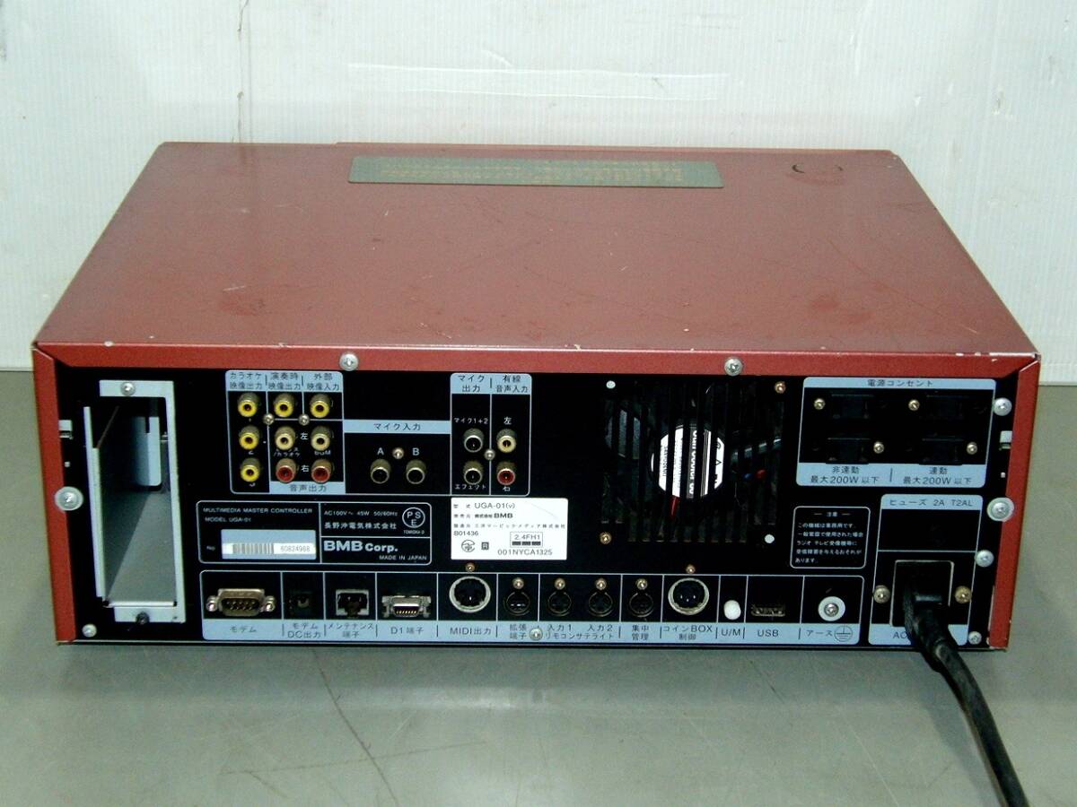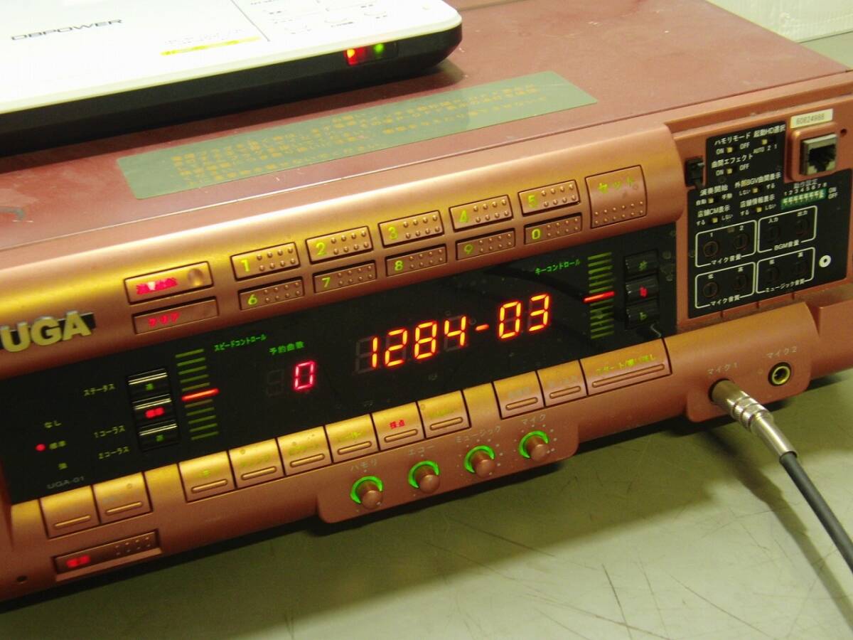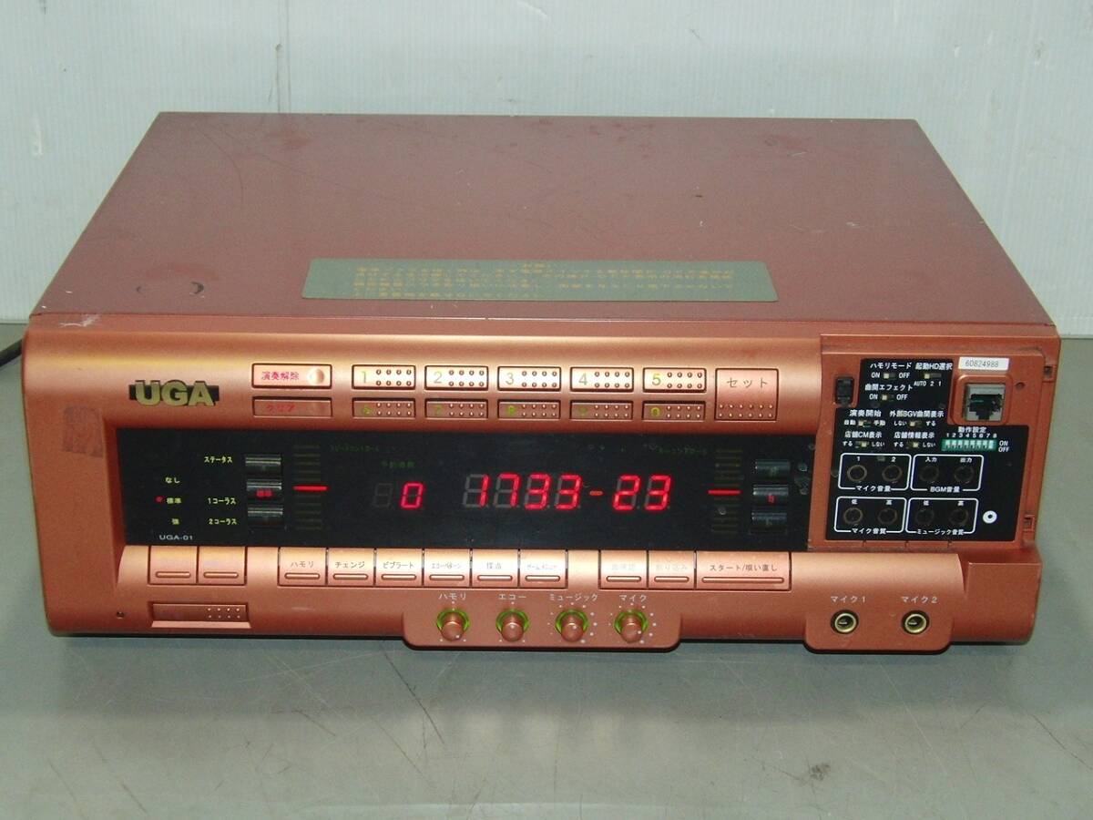 BMB UGA ウガ UGA-01 V仕様 カラオケ機 カラオケターミナル 通電/動作確認済 の出品です。 UGA-01は、2004年にBMB(後のエクシング)が発売した初代UGAシリーズの通信カラオケ機で、音質・機能・デザインに優れた名機として知られています。 中古品 外観につきましては、使用に伴う傷、汚れなどがあります。 通電確認 OK (正面パネル表示OK) 動作確認は、適当に番号を打ち込み、曲が再生されることを確認しました。 音声、映像、マイク出力確認済み。 キーコン動作しました。 本体正面右側のカバーが欠品しています。 個々の詳細なチェックまでは出来ておりません。 さらに多くの画像をご確認できます。こちらをご覧ください 【出品内容】 UGA-01(本体のみ) ※モニター、電源ケーブル類は付属しません。 使用及び保管に伴う、キズ・汚れ等ございます。 商品の程度・状態は、掲載画像にてご確認下さい。 詳細な動作確認が出来ていない為、申し訳ございませんが、ジャンク扱いでお願いします。 ノークレームノーリターンでご理解をお願いいたします。 上記内容を十分ご理解頂いた上でのご入札お願いします。 神経質な方、程度を非常に気にする方はご入札をお控え下さるようお願いします。 お探しの方!この機会にいかがでしょうか? | |