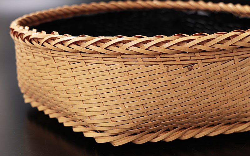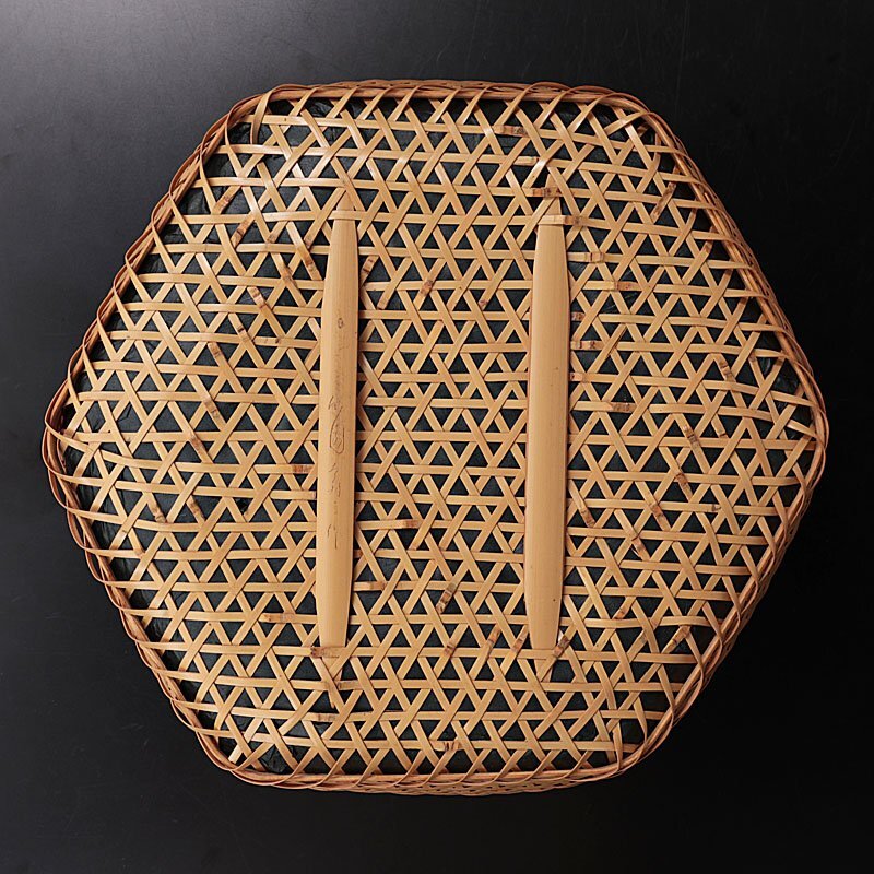 緻密に計算された全体のバランスが故に見た目が非常に美しく、かつ強度など実用性にも優れており、竹細工としての技巧を感じさせる仕上がりの炭斗です。 ★商品は東竹園斎の作品である事を保証致します。 |