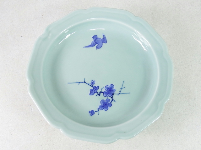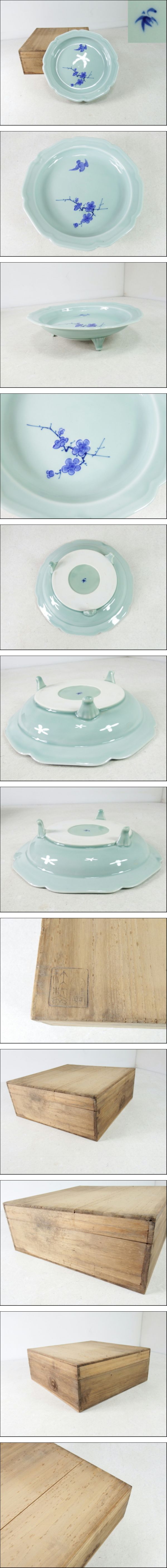 ■■香蘭社 オールド香蘭社 青磁 花鳥文 脚付菓子皿 フルーツ盛皿 桐箱 梅に鳥■■ | |||