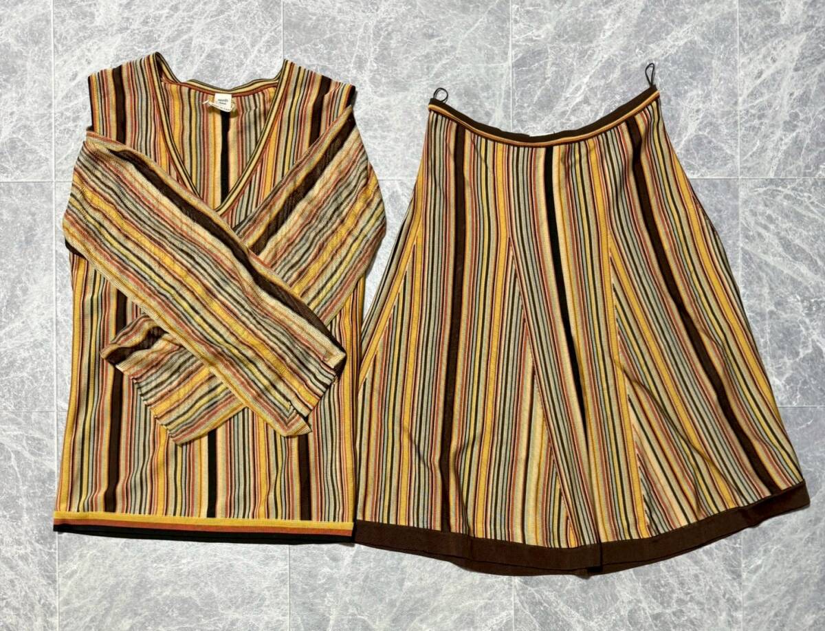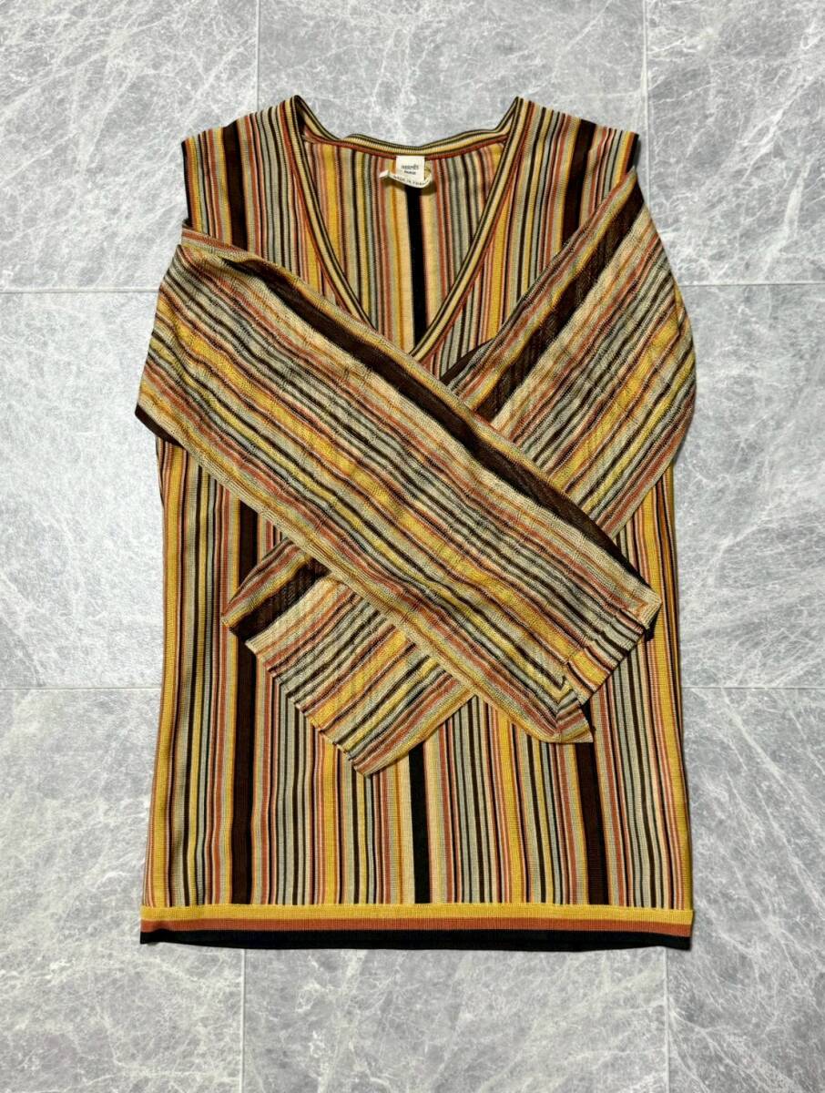 商品名: HERMES by Jean Paul Gaultier エルメス ゴルチェ ゴルチエ期 リボン ボウタイ スカーフ レーヨン マルチカラー ニット セットアップ アンサンブル ノースリーブ スカート サイズ36 38