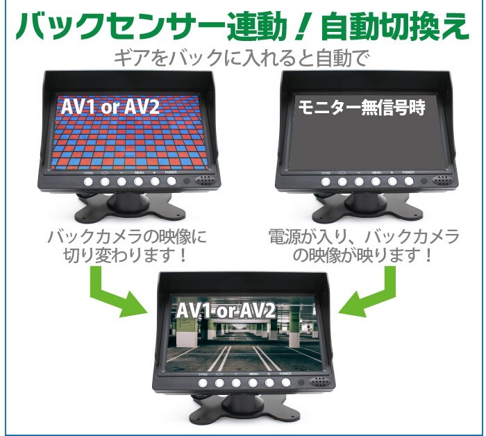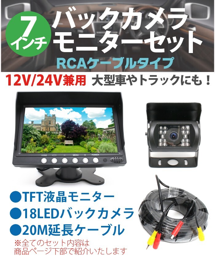 | 7インチ バックカメラ モニター セット RCAケーブルタイプ 20Mケーブル付 大型車・トラックにも最適! | ||