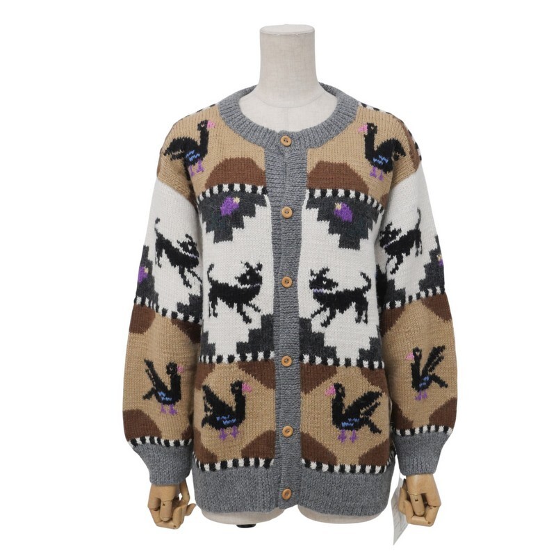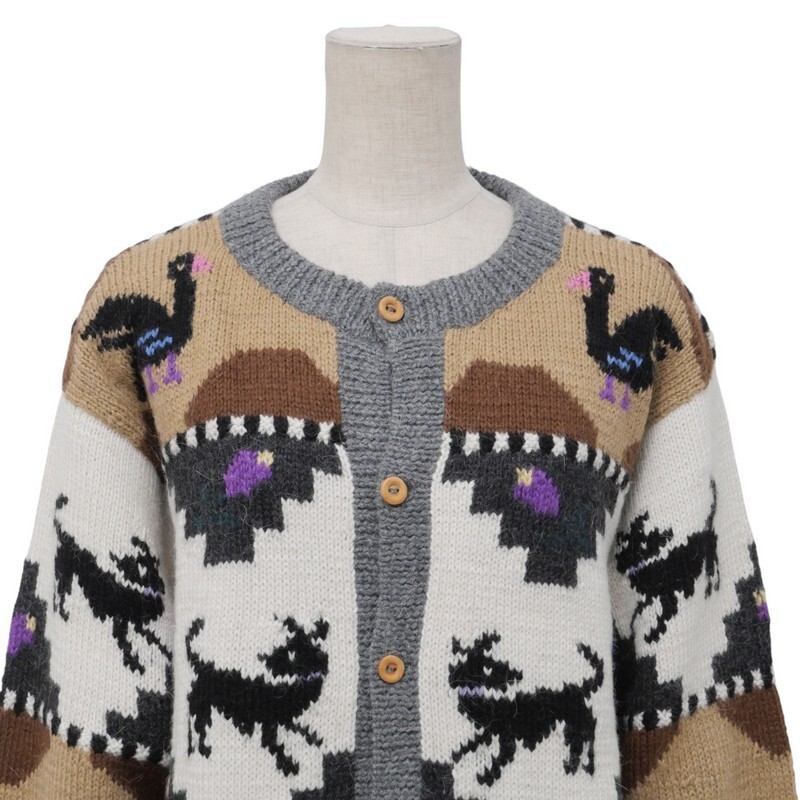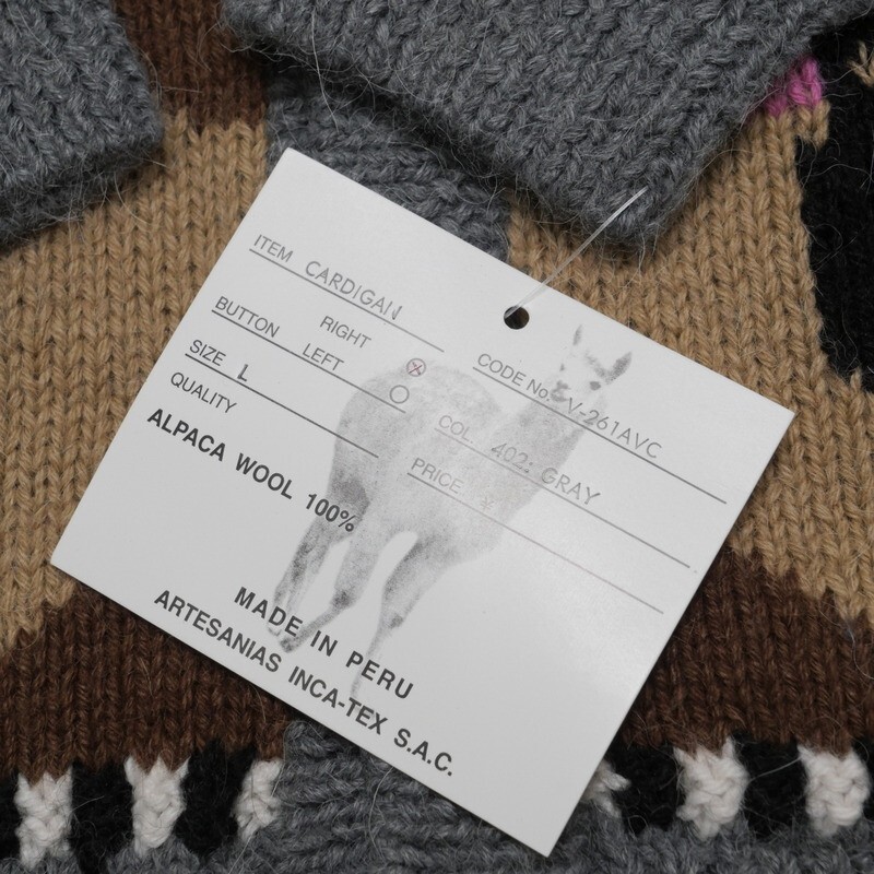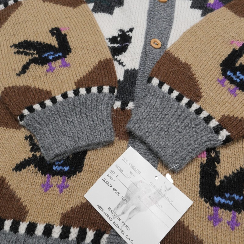 | TI6891★ペルー製 デッドストック INCA TEX インカテックス アルパカ100% アニマル柄 ニットカーディガン サイズL | |||