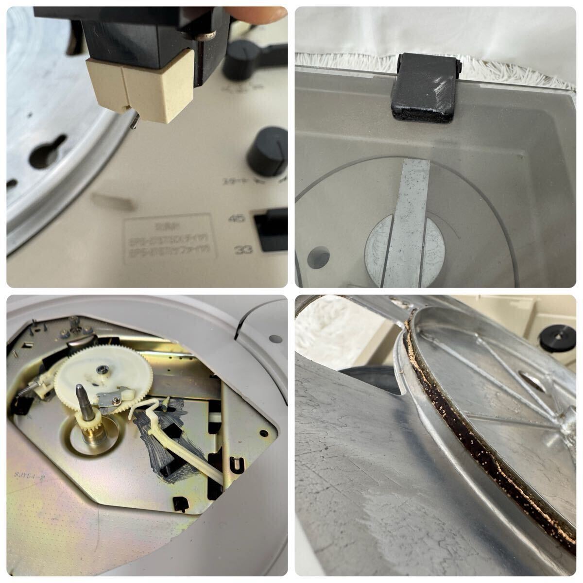 ご覧いただきましてありがとうございます。 商品タイトルのお品の出品になります。 よろしくお願いします。 当方、専門家ではない為、 質問に答えられない場合がございます。 National製のステレオサウンドセンター「S-550N」です。 レコードプレーヤー、カセットデッキ、AM/FMラジオが一体化した昭和レトロなオーディオ機器です。 カートリッジ・カバーのヒンジなども揃っており、針も付属しています。 チューナー・カセットテープ機能は動作しております。 レコード機能はベルトの回転軸は回転しておりますが、ベルトがないためそれ以上の動作は 未確認になります。 外装にはキズ、汚れ、金属部の剥がれなど経年劣化が見られます(画像をご参照ください)。 現状品・ジャンク扱いでの出品となります。 修理前提・部品取り・ディスプレイ用などにご検討ください。ジャンク品にご理解のある方のみご入札をお願いいたします。