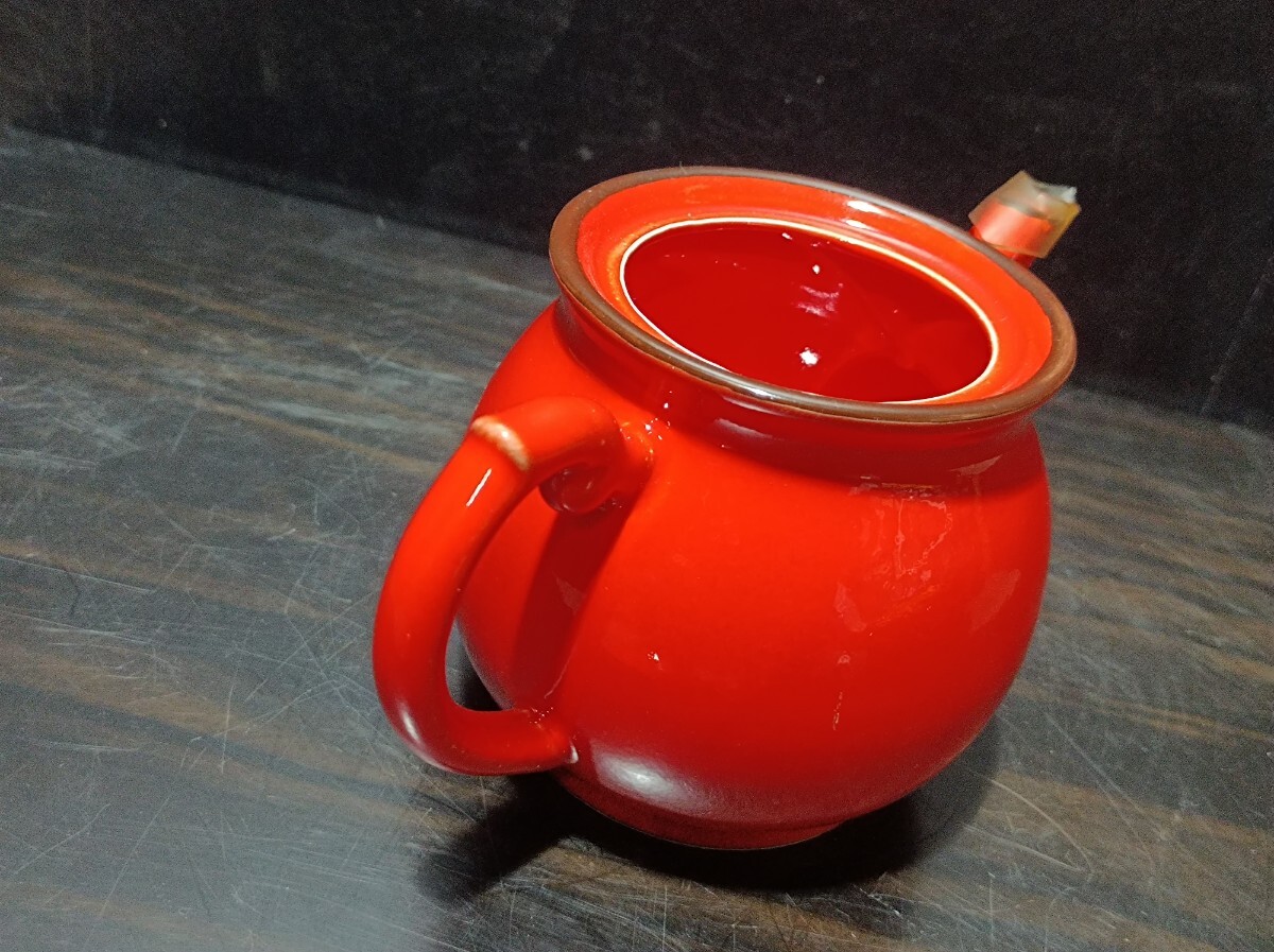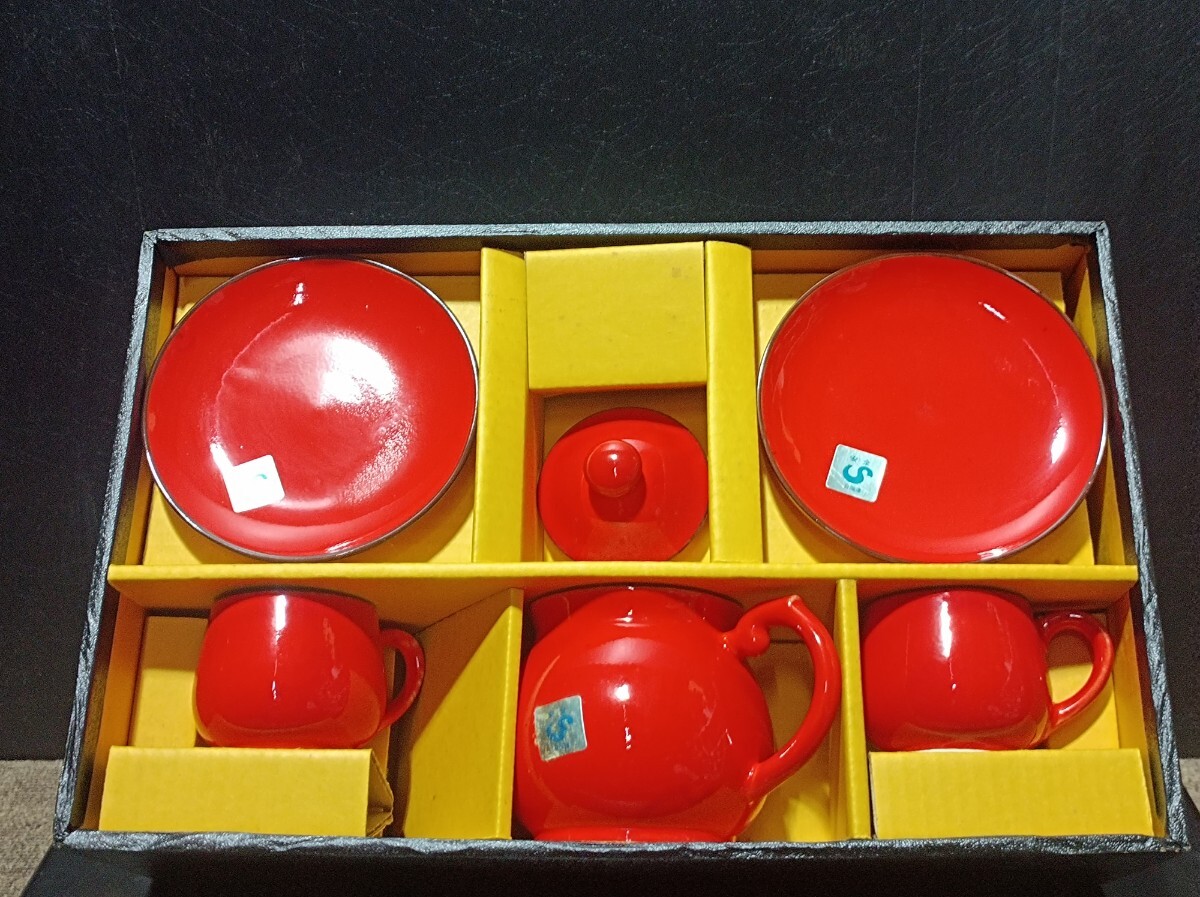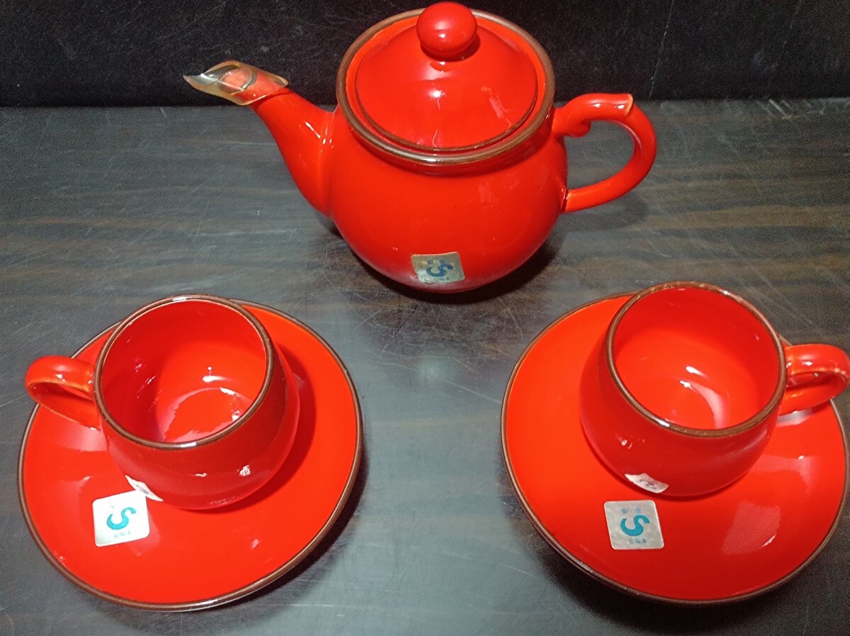 昭和レトロな、光沢のある赤い陶器製ティーポットとカップのセット。| 出价者 | 信用 | 价格 | 时间 |