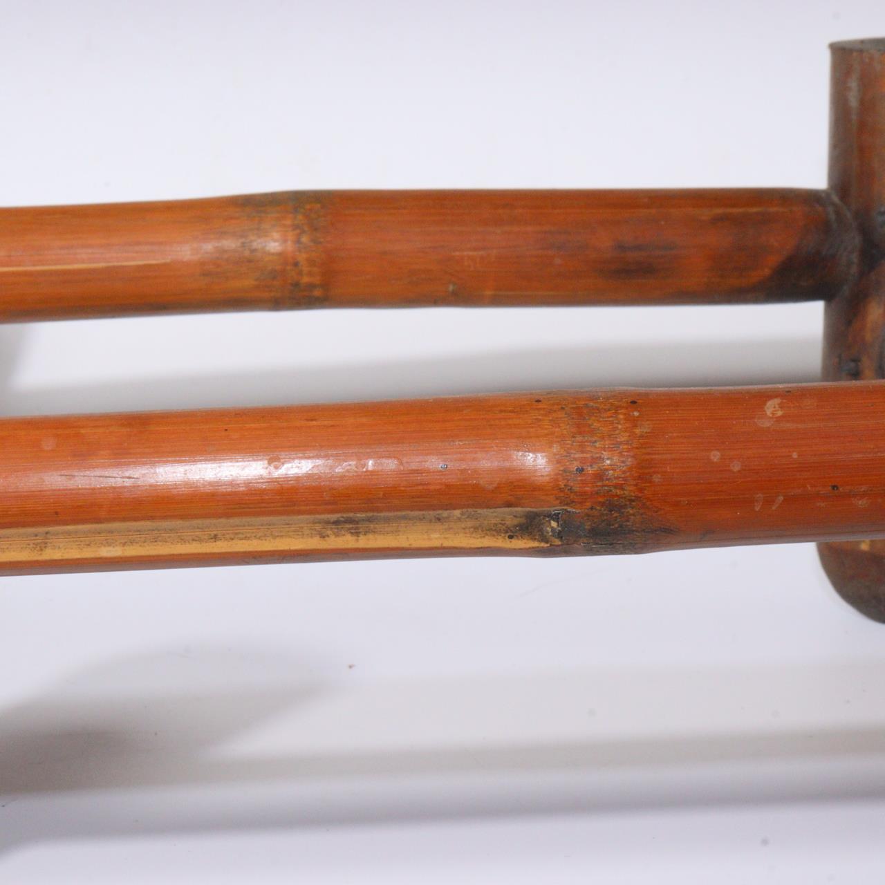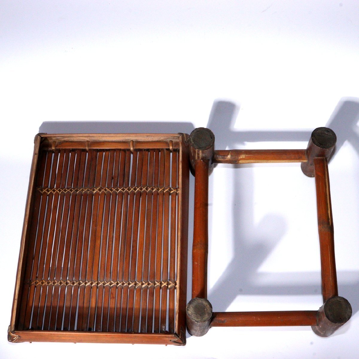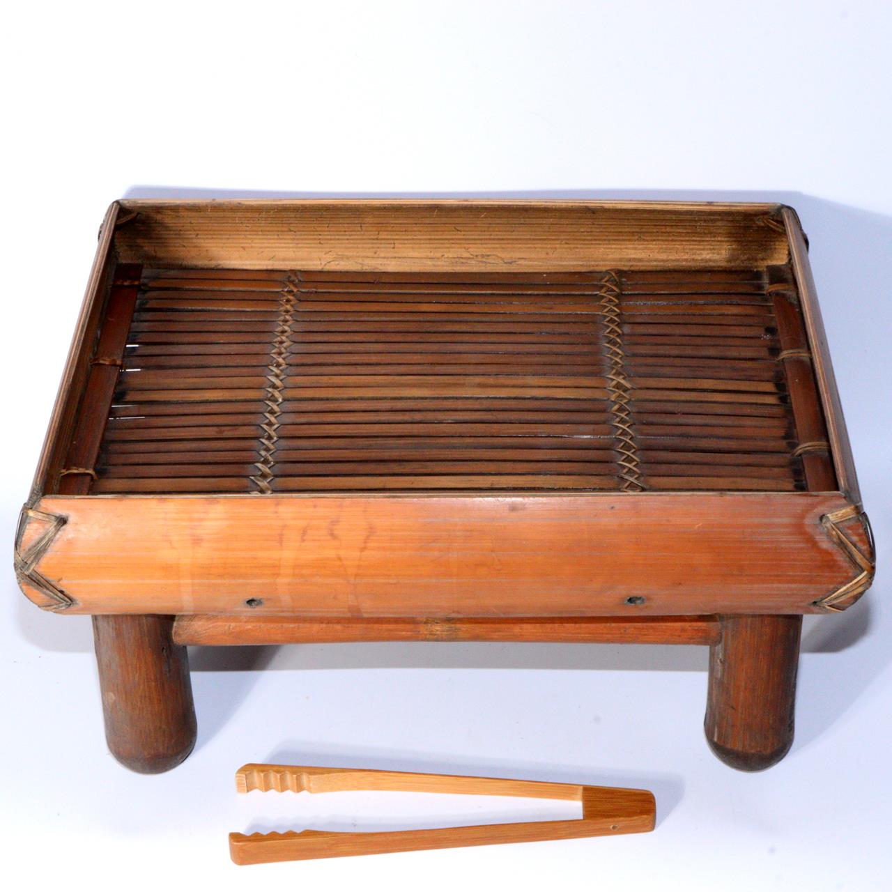 こちらは昭和期以前に作られた、竹製の和菓子陳列台です。 和菓子店で使用されていたもので、細密な竹細工による手作りの逸品です。 竹のスリットを丁寧に組み合わせ、伝統的な編み込み技法で固定されています。 現存数の少ない貴重な店舗什器です。 竹製の台座と竹製の小さな菓子トングが付属し、当時の雰囲気をそのまま感じられます。 茶席での菓子盆としてはもちろん、和のインテリアディスプレイやコレクションにも最適です。 【特徴】 素材:竹 原産:日本 時代:昭和期 付属品:台座・竹製トング 【サイズ】 高さ:約18cm 幅:約34cm 奥行:約26cm 重量:約900g 【状態】 経年による擦れ・シミなどが見られますが、全体的にしっかりとした状態を保っています。 ヴィンテージ品として時代の風合いをお楽しみください。 詳細は写真をご確認ください。 ぜひこの機会にご検討ください。 ![]() ![]() ![]() ![]() ![]() ![]() |