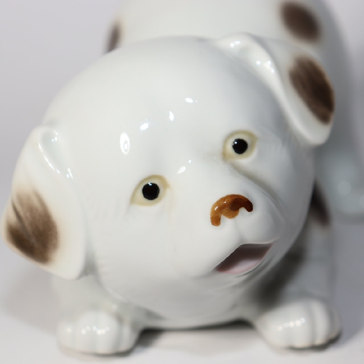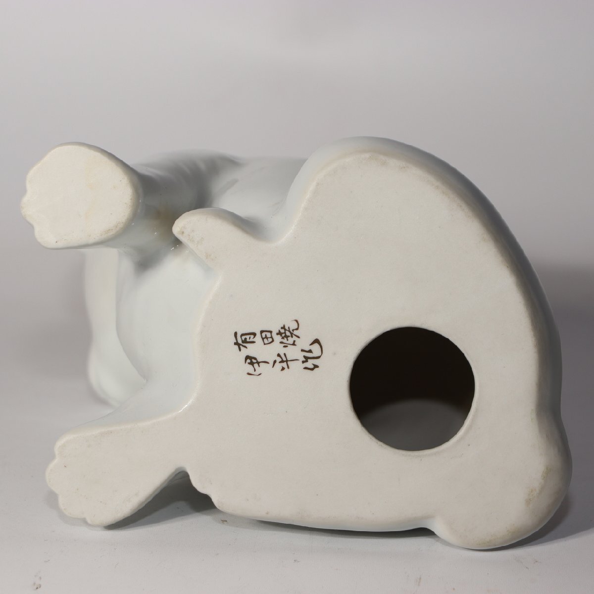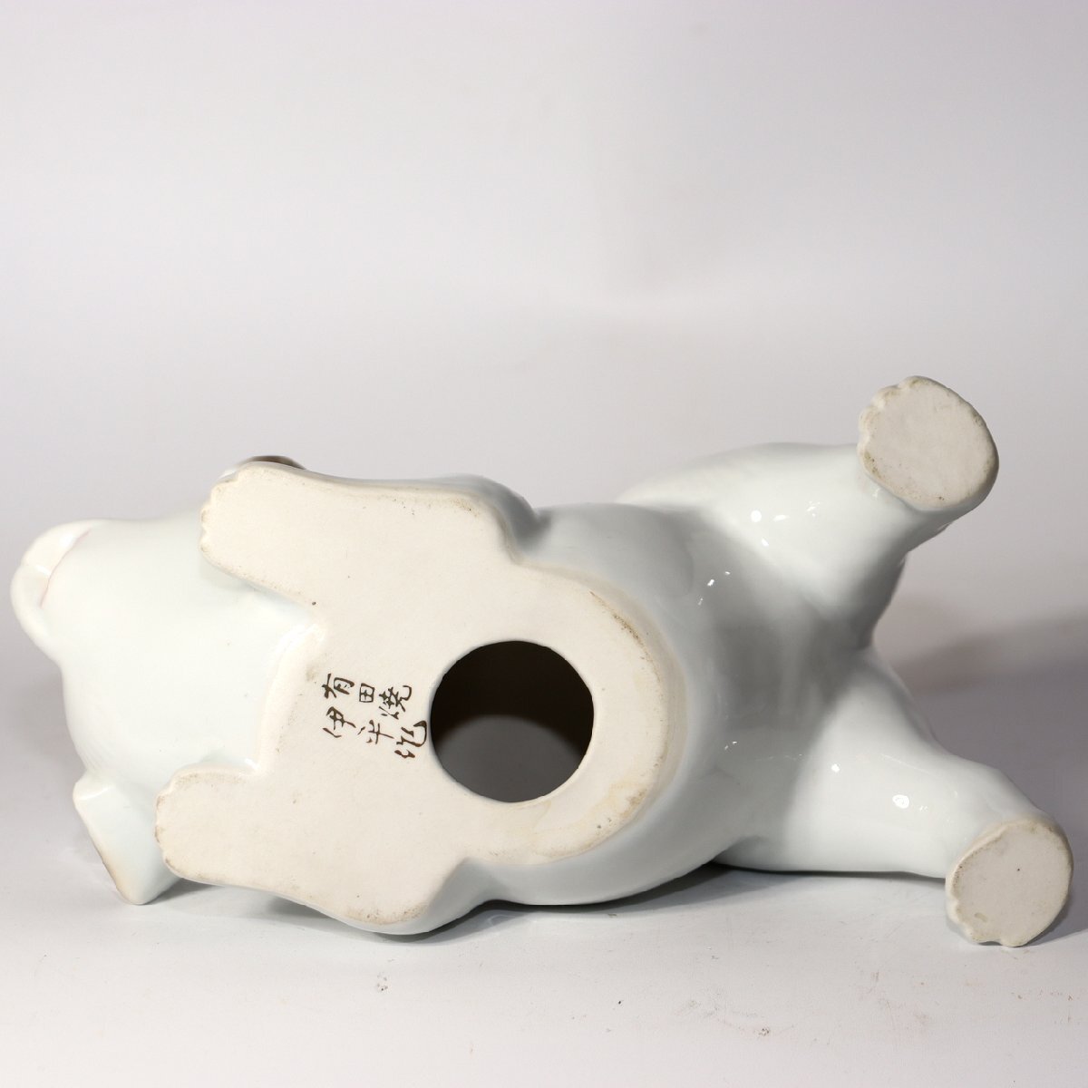 こちらは、有田焼(伊万里焼)の伝統技法で制作された磁器製の犬の置物一対です。 作家「伊平」による作品で、柔らかな白磁の光沢と茶褐色の手描き彩色が上品な印象を与えます。 表情豊かで温かみのある造形が特徴的で、可愛らしさの中にも職人技の繊細さが感じられる逸品です。 有田焼の中でも動物モチーフの置物は希少で、コレクターズアイテムとしても高い人気があります。 お部屋のインテリアや贈り物としてもおすすめです。 【特徴】 素材:磁器(有田焼/伊万里焼) 作家:伊平 仕上げ:白磁に茶褐色の手彩色 制作:20世紀中頃(昭和期) 【サイズ】 座り犬:高さ 約12.5cm/幅 約13cm/奥行 約8cm 遊び犬:高さ 約10cm/幅 約16.5cm/奥行 約9cm 総重量:約490g 【状態】 ヒビや欠けはなく、全体的に良好な保存状態です。 経年に伴うわずかな擦れは見られますが、艶やかな光沢を保っています。 詳細は写真をご確認ください。 ぜひこの機会にご検討ください。 ![]() ![]() ![]() ![]() ![]() ![]() |