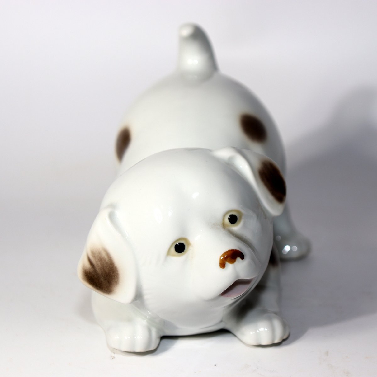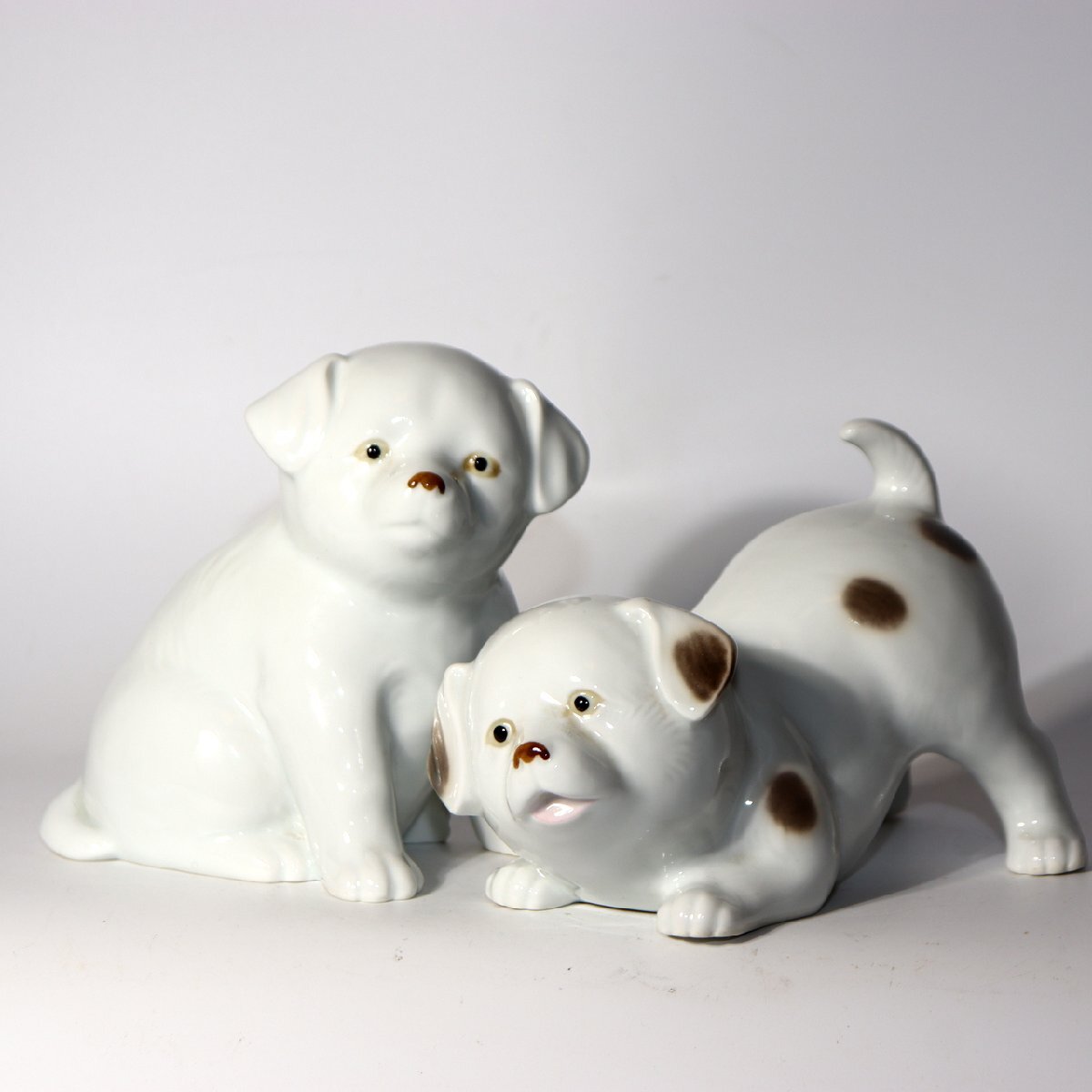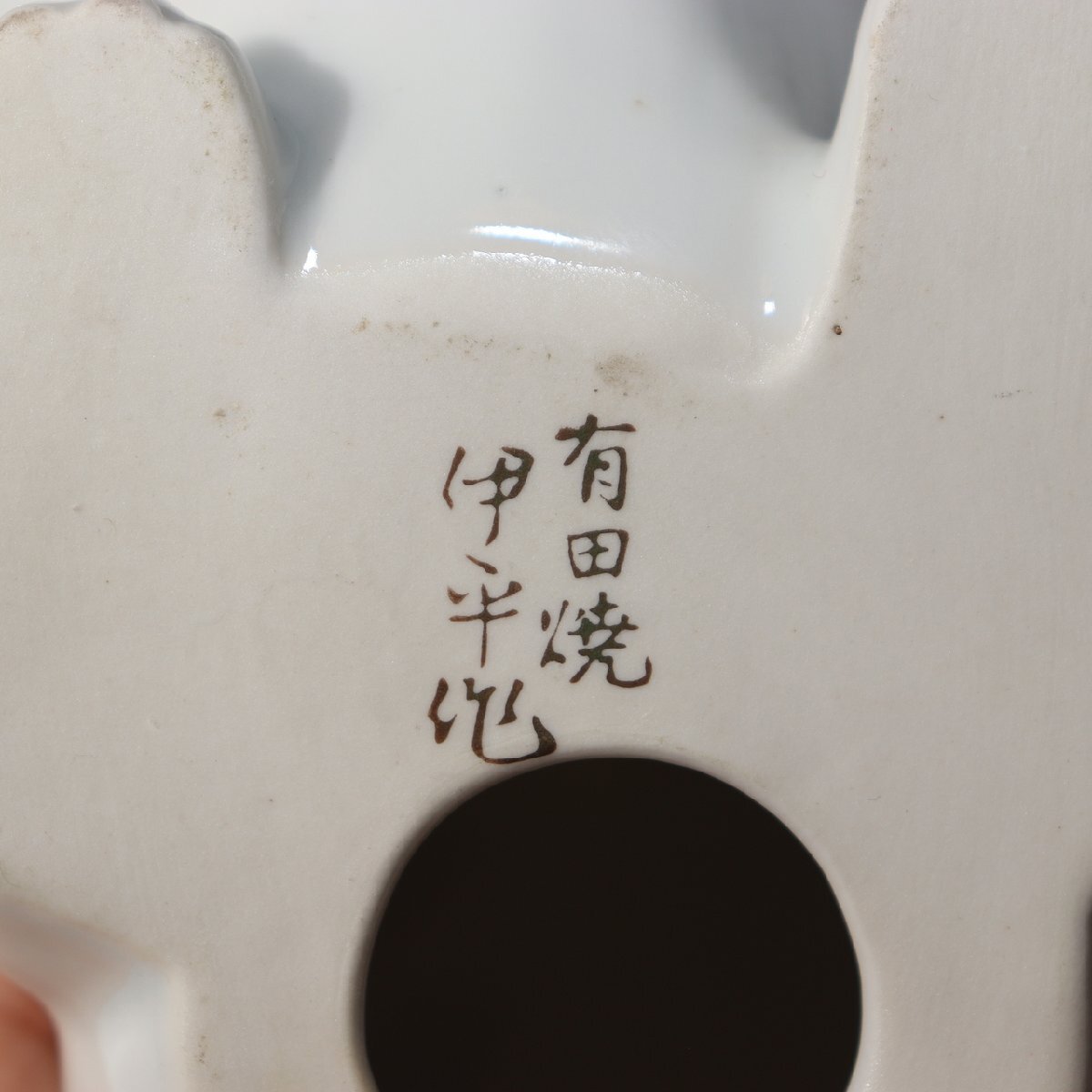こちらは、有田焼(伊万里焼)の伝統技法で制作された磁器製の犬の置物一対です。 作家「伊平」による作品で、柔らかな白磁の光沢と茶褐色の手描き彩色が上品な印象を与えます。 表情豊かで温かみのある造形が特徴的で、可愛らしさの中にも職人技の繊細さが感じられる逸品です。 有田焼の中でも動物モチーフの置物は希少で、コレクターズアイテムとしても高い人気があります。 お部屋のインテリアや贈り物としてもおすすめです。 【特徴】 素材:磁器(有田焼/伊万里焼) 作家:伊平 仕上げ:白磁に茶褐色の手彩色 制作:20世紀中頃(昭和期) 【サイズ】 座り犬:高さ 約12.5cm/幅 約13cm/奥行 約8cm 遊び犬:高さ 約10cm/幅 約16.5cm/奥行 約9cm 総重量:約490g 【状態】 ヒビや欠けはなく、全体的に良好な保存状態です。 経年に伴うわずかな擦れは見られますが、艶やかな光沢を保っています。 詳細は写真をご確認ください。 ぜひこの機会にご検討ください。 ![]() ![]() ![]() ![]() ![]() ![]() |