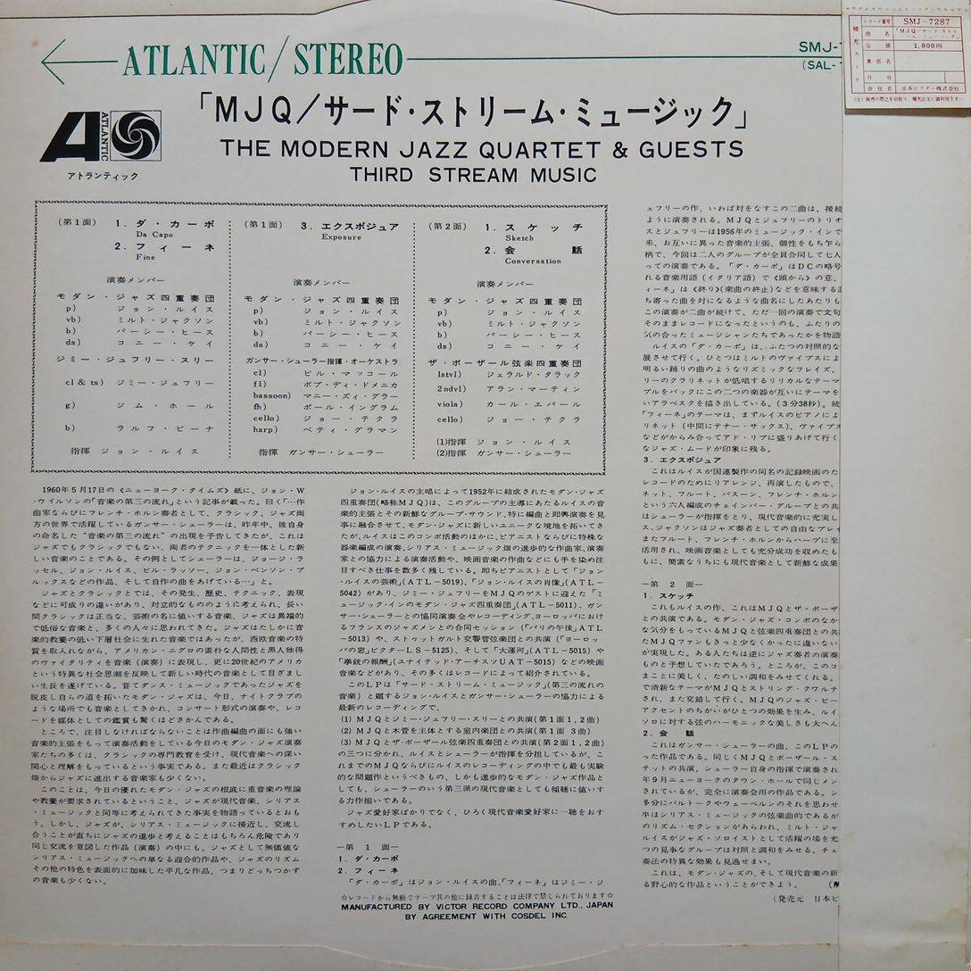 日本ATLANTIC、LP、プロモ非売品。1965年。レアなプロモ見本盤の白ラベル。しかも帯付き。MJQとジミ・ジュフリー・スリーとの共演盤。ギターはジム・ホール。ジャケ、盤ともに年代の割りにはかなり状態いい方ですよ。プロモ盤はめったに市場に出ないのでぜひ。