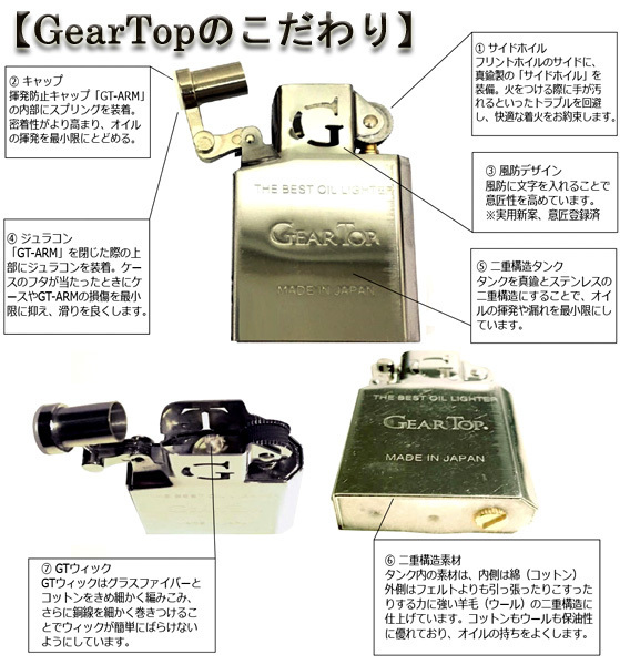 《< 新品正規品 日本製 GEAR TOP(ギアトップ)フリント式オイルライターGT1-08(真鍮無垢) >》