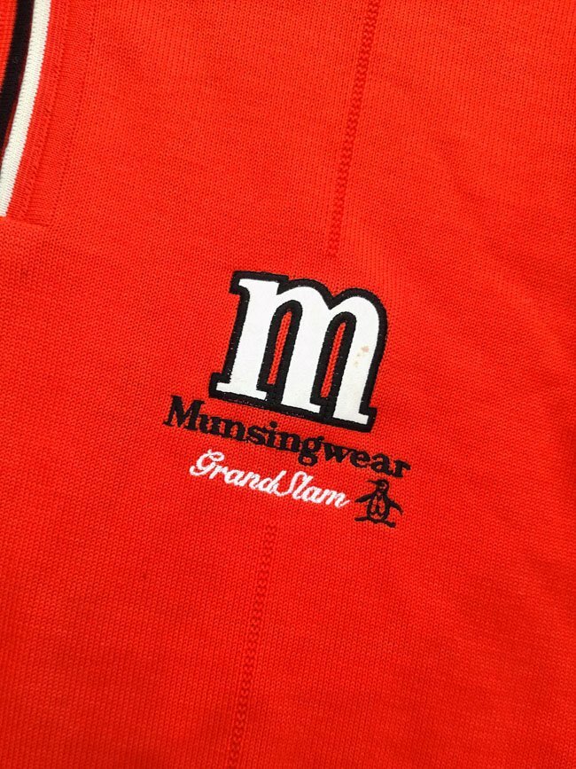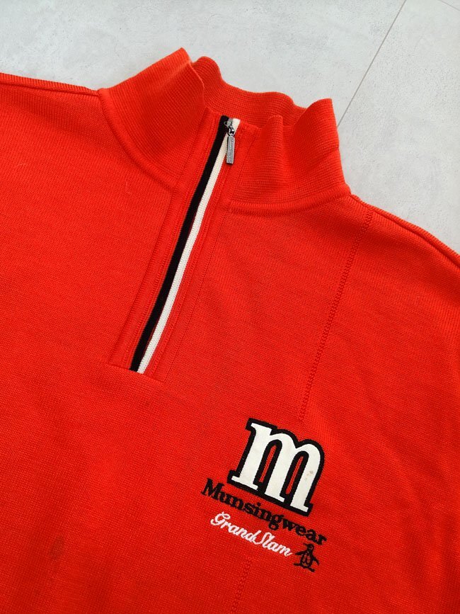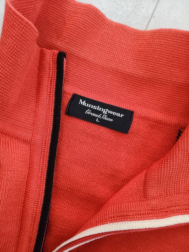 | 商品の詳細 | 商品名 | Munsingwear マンシングウェア GRANDSLAM グランドスラム ロゴ刺繍 ハーフジップ ウールニット セーター L/スタンドネック ニット/オレンジ/メンズ/日本製 4796 |