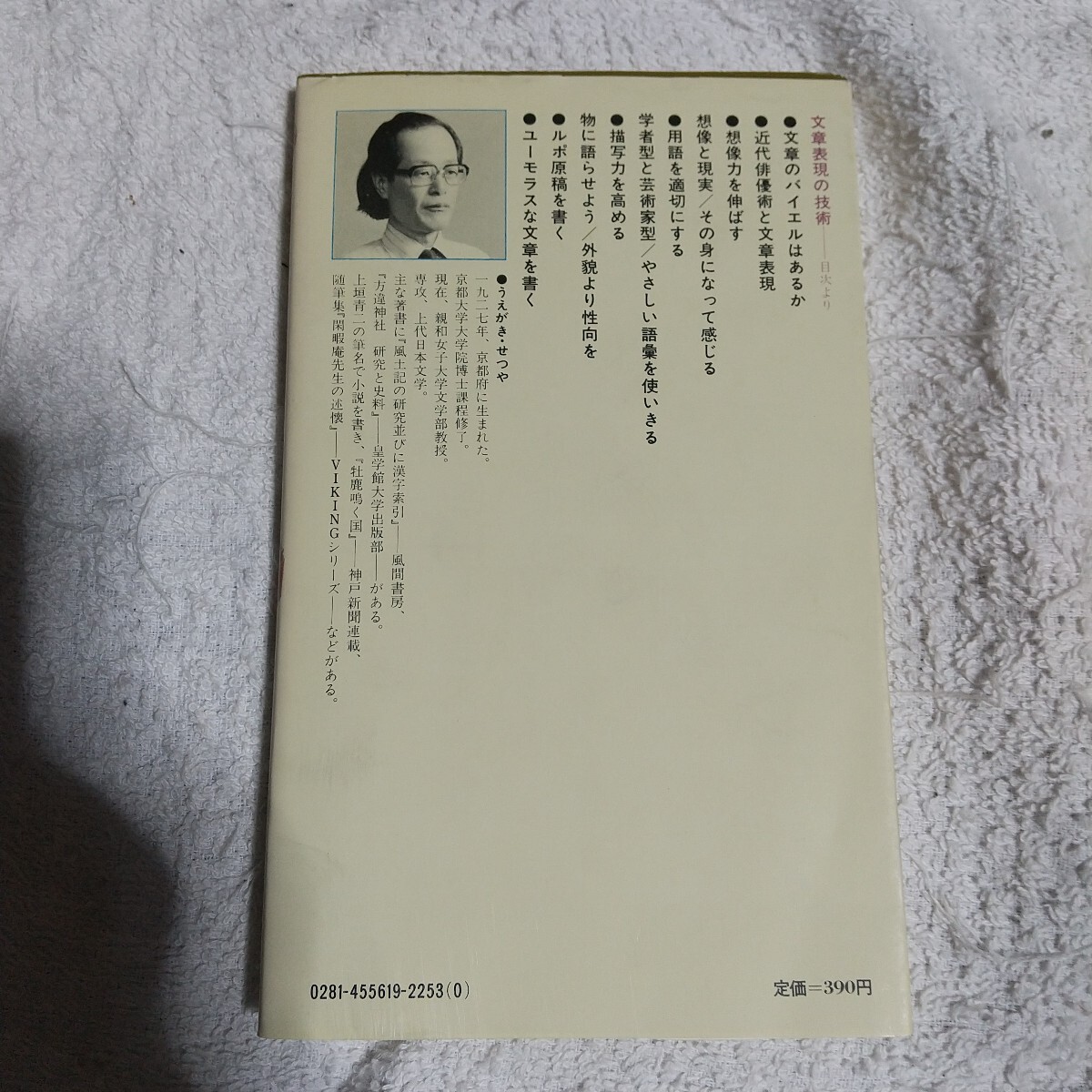 10年ぶりで突然友人に出会ったとき――街角から急に大きな犬が飛び出してきたとき――“驚き”といっても様々な場面があり感情がある。いつでも、「驚いた」「びっくりした」としか書けないのでは失格である。文章表現とは、つまるところ人間を新たな目をで見直し、書く素材と自分との距離を縮めることである。ペンを握るまえに街に出て、通りすぎる男と女を観察し、想像することから文章修業は始まる。“名人芸”の紹介に終わりがちな文章作法の弊害を排し、近代俳優術の修業をヒントに、体験をまじえ語る。