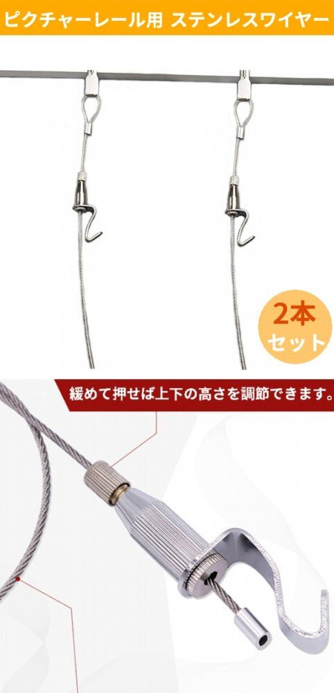 | ピクチャーレール用 ステンレスワイヤー シルバー 1.5m 2本セット |