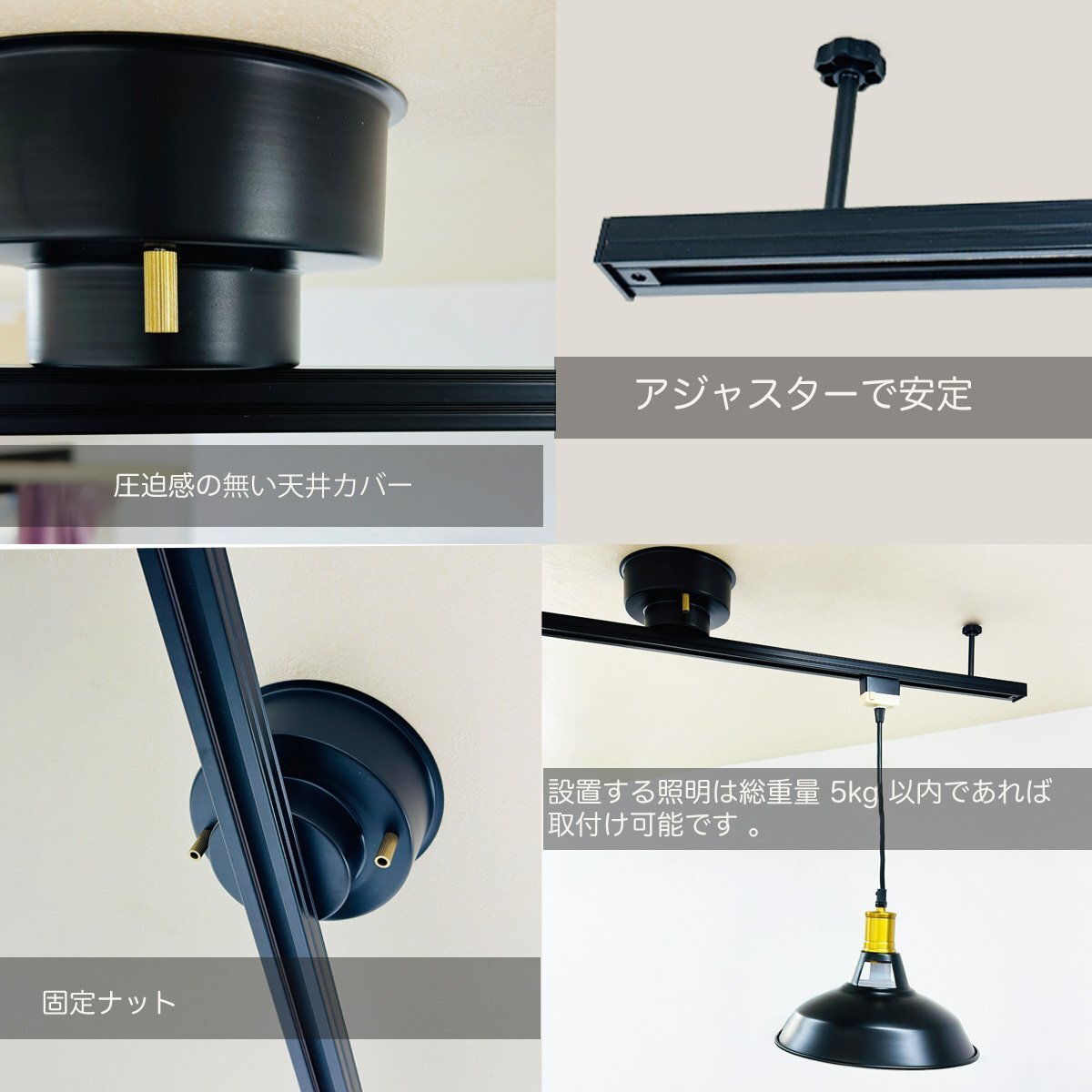 【アジャスター付きだからレールのバランスをキープ!】両サイドにある固定用アジャスターで天井と固定ができるためダクトレールの傾きを防ぎます。ライトの位置によってダクトレールが偏ったりせずしっかりと安定するのでライトを複数取り付けても安定性がバッチリです。そのため、あらゆる照明をご使用いただけます。
