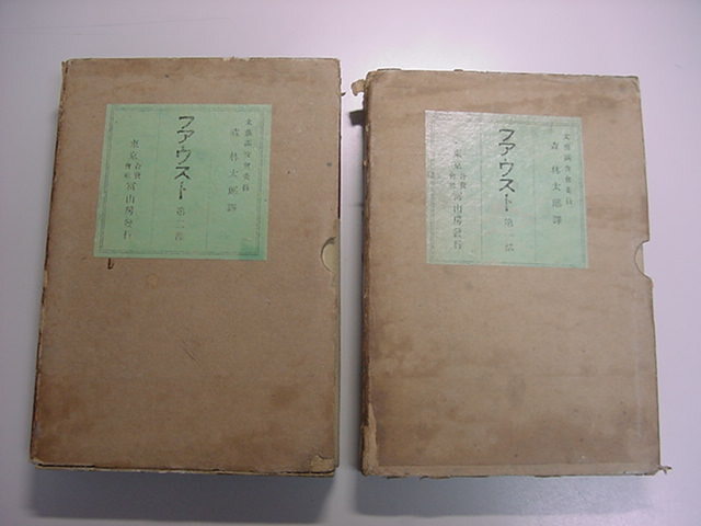 大正2年(1913)に刊行されたオリジナル『フアウスト 1部2部』全2冊揃いです。箱付きですが一つは底がないです。あの森鴎外林太郎の原著で素晴らしいです。保存状態も概ね可です。この機会をお見逃しなく!