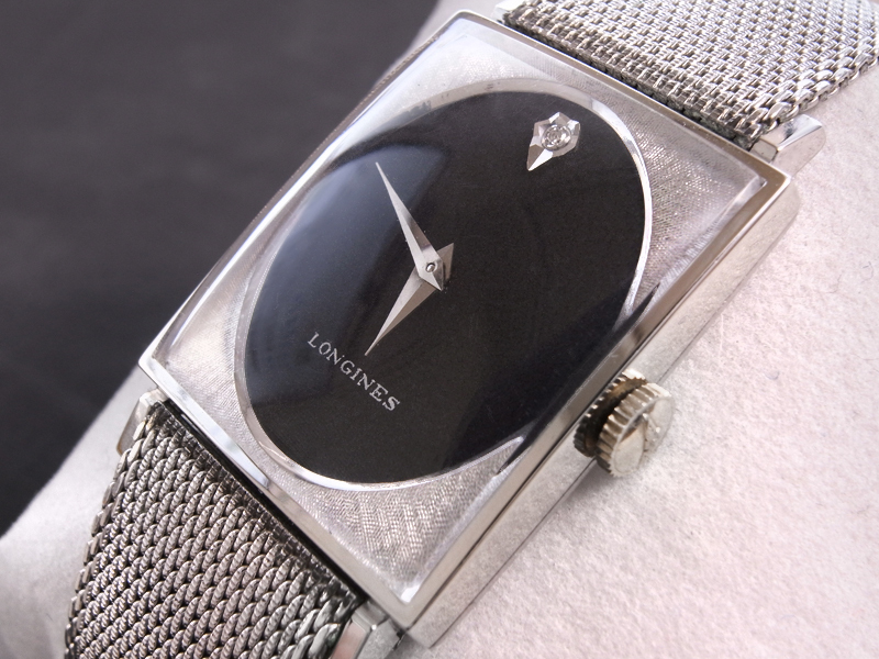 1970年代 ロンジン レクタングラー Cal.528 手巻き ブラック楕円ダイヤル 1Pダイヤ 10Kゴールドフィルドケース