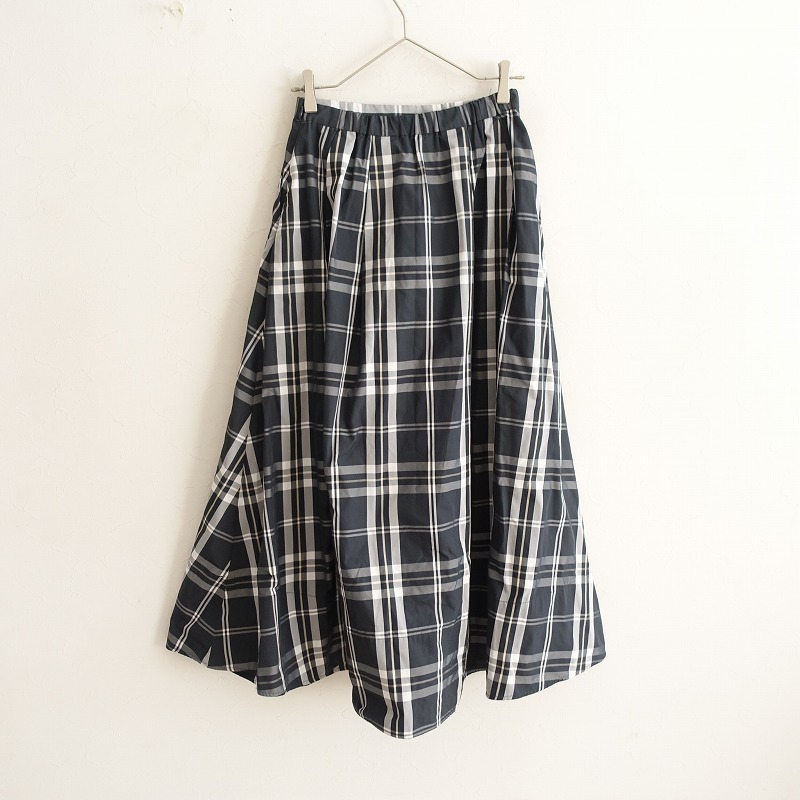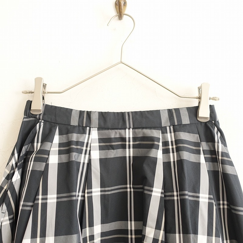 | Spick and Spanのボリュームスカートです。カラーはブラック×ホワイト×グレー等のチェック柄で、ウエスト左側のホック×ファスナーで着用いただきます。ウエスト後ろ部分はゴム入りで、両腰にポケットがございます。定価(メーカー希望小売価格)15,400円のお品物です。 |
