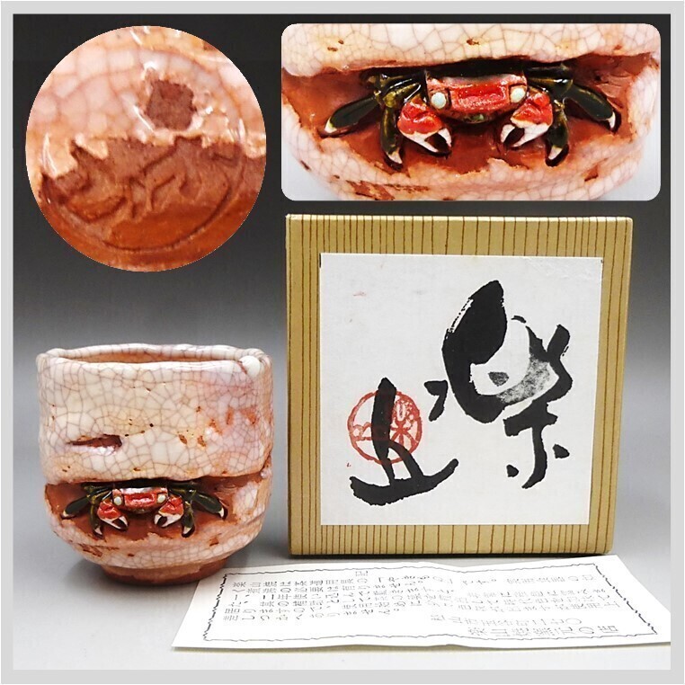 ◆製品名:楽山焼 傑作 名工 蟹 湯呑 お猪口 茶道具 正規箱 愛媛県松山 伊予 道後 陶器 水月焼 二六焼 天神蟹