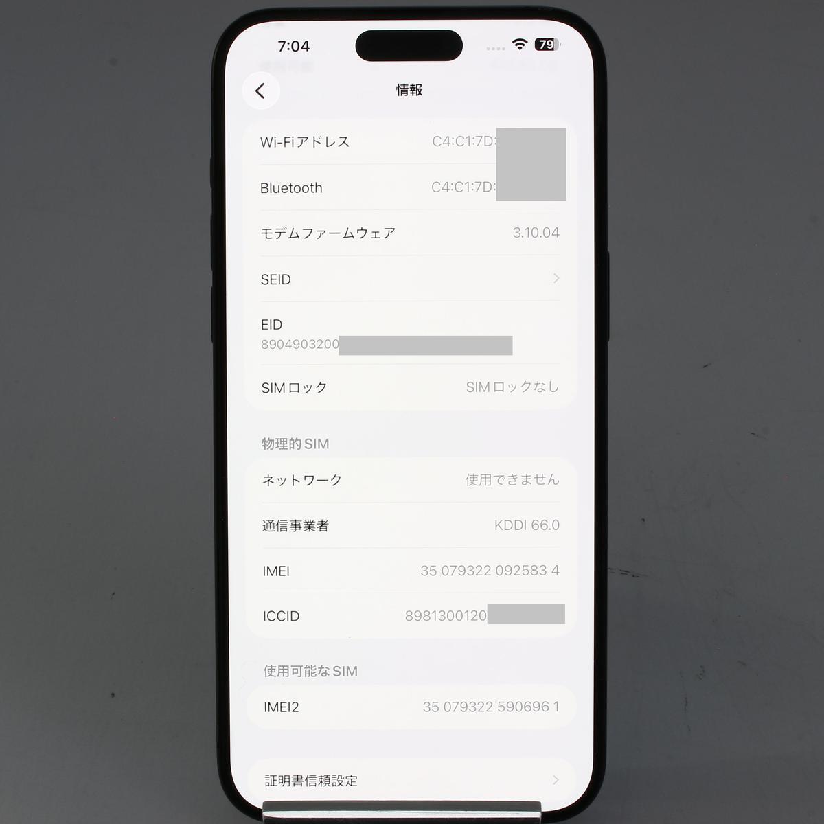 ――――――――――――――――――――― ◆商品について ――――――――――――――――――――― 通電・動作確認、初期化済みの中古商品です。 画面割れはありませんが、若干の擦り傷、側面等の打痕は見受けられます。 アルコール簡易クリーニング済みです。 元キャリアはauでSIMロック解除を確認済みです。 docomo回線で確認済みです。 アクティベーションロックはかかっていません。 すり替え防止等セキュリティの目的で製造番号等は記録し画像では伏せております。 メーカー:Apple 品名:iPhone 15 Pro Max 容量:512GB 色:ブラックチタニウム iOSバージョン:26.1 モデル番号:MU6U3J/A IMEI1:350793220925834 IMEI2:350793225906961 バッテリーの状態:89% キャリア:au アクティベーションロック:かかっていません 利用制限:◯判定 SIMロック解除:済み サイズ(約):W76.7×H159.9×D8.25mm 重量(約):221g 付属品:説明書類、USB-Type Cケーブル、元箱 詳細な状態は 追加画像 をご覧下さい。 詳細な情報は 参考ページ をご覧下さい。 シリアル番号のある商品については通常以下の理由により、購入者以外には開示しておりません。 ・不正利用や詐欺防止などのセキュリティ保護のため ・他人による不正な保証請求や所有権トラブルを回避するため ・正当な購入者にのみ情報を提供するための配慮 ・偽造品製造への悪用を防ぐため ・メーカーや販売元の要請による場合があるため 取扱記録として記録を残しておりますので何卒ご理解いただけますと幸いです。 ご覧頂きまして、ありがとうございます。 本商品はお客様から引取、買取させていただいたお品物です。 他にも出品中です、是非ご覧ください。 ――――――――――――――――――――― ◆補償について ――――――――――――――――――――― 商品到着後3日以内にご連絡ください。 消耗品を除き、動作確認の範囲内、 自然故障による初期不良を対象に、 返金または代替交換させて頂きます。 ――――――――――――――――――――― ◆配送・送料について ――――――――――――――――――――― 運送会社:日本郵便 配送方法:ゆうパック 追跡番号:あり 運送補償:あり 出荷寸法:60cm以下 出荷重量:25kg以下 配送料金:送料込の為、追加料金はございません。 離島による追加料金はございません。 ――――――――――――――――――――― ◆ご利用ガイド ――――――――――――――――――――― ・入札から落札まで ・入札が出来ない場合 ・落札後のお取引方法 ・困ったときのQ&A ・!ヘルプ 他にも出品中です、是非ご覧ください。 ――――――――――――――――――――― 神奈川県公安委員会 古物商許可 第452730005554号 ――――――――――――――――――――― |