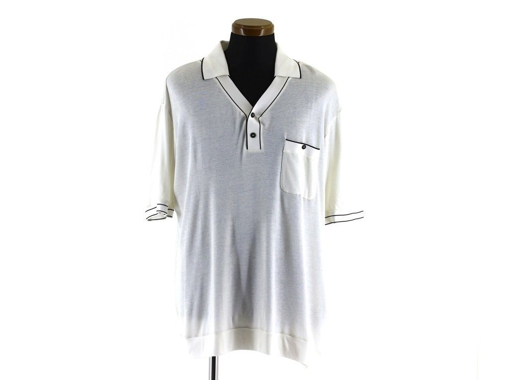24万新品◆54=2XL◆GIORGIO ARMANI ジョルジオアルマーニ Vネック ファインニットポロTシャツ ストレッチビスコース 白×黒