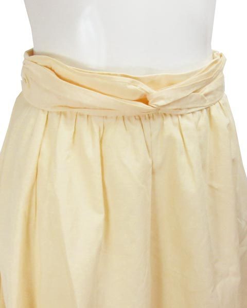 | 優しいイエローのフェミニンなスカート。ウエストのねじり飾りがポイントで、トップスをインしたコーディネートでオシャレをお楽しみいただけます。ビジネスシーンからオフの日までお使い頂けます。春夏らしいイエローファッションを取り入れてみてください。 |