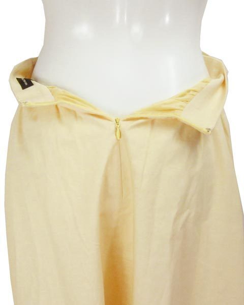 | コメント | 優しいイエローのフェミニンなスカート。 ウエストのねじり飾りがポイントで、トップスをインした コーディネートでオシャレをお楽しみいただけます。 ビジネスシーンからオフの日までお使い頂けます。 春夏らしいイエローファッションを取り入れてみてください。 |