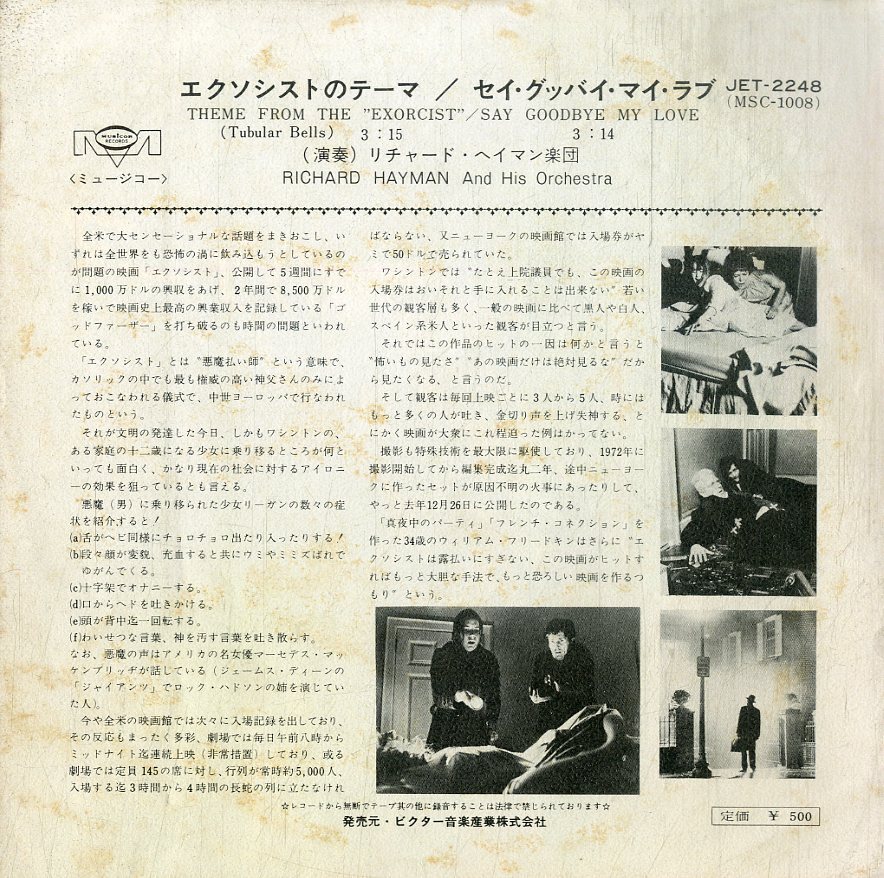 タイトルエクソシストのテーマ Theme From The Exorcist (Tubular Bells) / Say Goodbye My Love (JET-2248・サントラ)