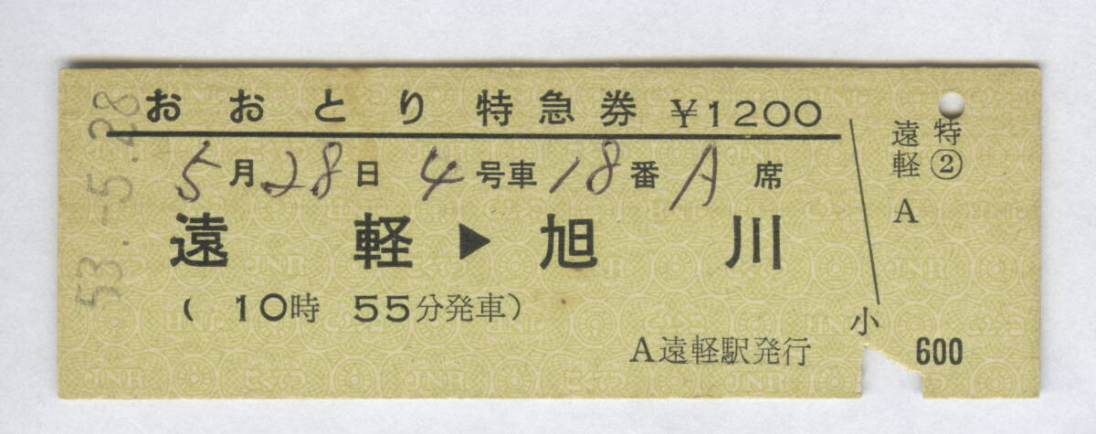 | 国鉄 完全常備 「おおとり」 特急券 遠軽→旭川 微汚れ 昭和53年 | |