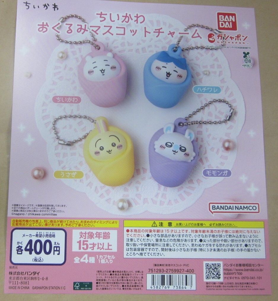ガシャポン。ちいかわ おくるみマスコットチャーム。