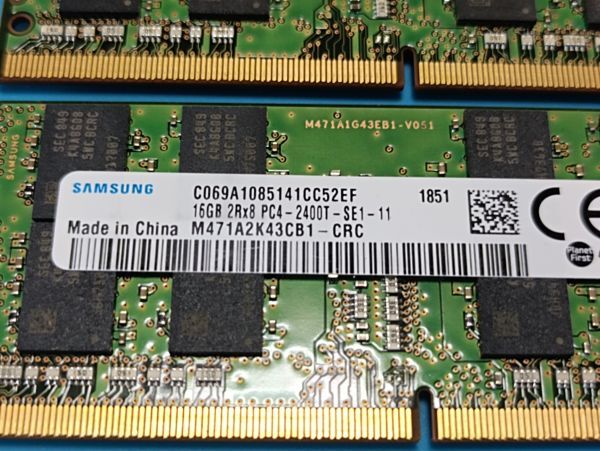 | (BIOS確認済み)ノートPC用【SAMSUNG】 16GB 2Rx8 DDR4 PC4-2400T 16GBx2枚 計32GB | ||||