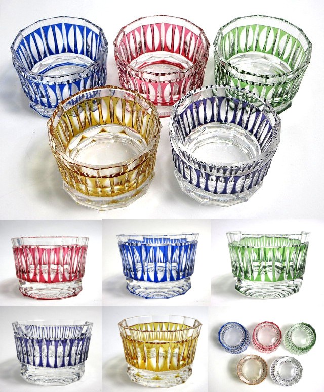 カガミクリスタル ガラス 五色切子 小鉢 切立 5客【説明欄に詳細写真有り】の出品です。