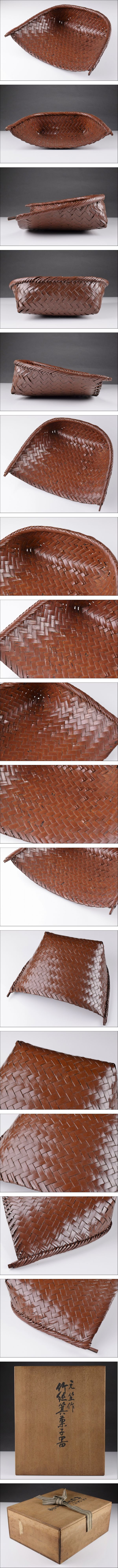 | 品 名:栗田元竺 作 時代 竹編 箕 菓子器 共箱 煎茶道具 寸 法:高さ 9㎝ 幅 20㎝×26.5㎝ 総重量:125g 状 態:目立った傷など無く良品でございます。 | |||