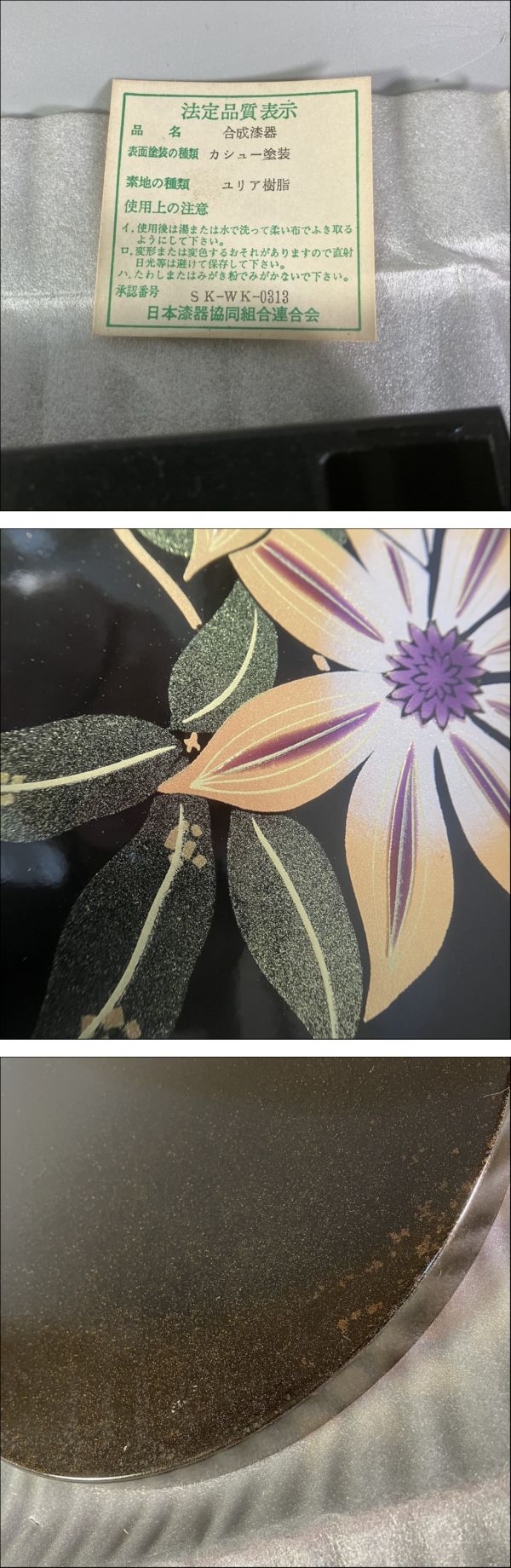 | M2-259 本蒔絵漆器 合成漆器 カシュー塗装 ユリア樹脂 昭和レトロ 新古品/長期保管品 美術工芸 丸盆/角盆 2点まとめ 日本漆器協同組合 | ||