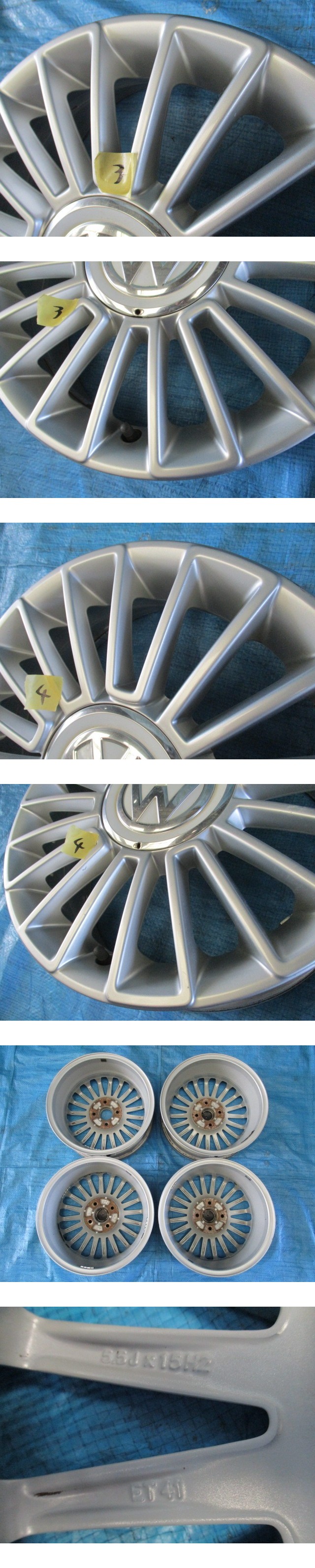 ※下記情報をよくご確認いただいたうえで入札してください。 弊社では「まとめて取引」への対応は行なっておりません。 同梱をご希望の場合はご入札前にご質問下さい。 同梱可能な商品の場合は対応いたします。 また、質問や連絡等なくまとめて購入を選択・決済をされた場合は別途追加の送料をいただくことがあります。 営業日15時までの入金確認で即日発送できます。 日曜日、第2・第4土曜日、祝祭日はお休みを頂いてます。 ■取り外し車両 ●認定型式=DBA-AACHY(VWフォルクスワーゲン up!アップ) ●年式=2012/11 ●車体番号=WVWZZZAAZDD012*** ●走行距離=128,818km ●エンジン型式=CHY ●ミッション型式=5AT ●型式指定/類別区分=17341/0042 ●グレード=ハイ アップ!(high up!) ●駆動=2WD ■詳細 ・上記車両からの取り外しです。 ・ホイール4本セットの出品です。 ●ホイール ※1本 約7kg VW(フォルクスワーゲン) up!(アップ) high up!(ハイ アップ) 純正アルミ サイズ 15×5.5J +41 ハブ径57mm 4H PCD100 ※ロックナットボルト付属 ■状態 ●ホイール ①リムにキズあります。 ②リムにキズ、取付穴周辺に少しキズがみられます。 ③・④全体的に小キズあります。 センターキャップが1本分欠品です。 ・気持ち良くお使い頂く為、出来る限りの掃除はしています。 ※当方で自動車部品を出品していますので、よろしければ下記のURLよりご覧ください。 team818ys出品リスト⇒https://auctions.yahoo.co.jp/seller/team818ys ■在庫管理番号 2500611-3 ■送料 (元払いのみの対応)運送会社の選択はできません。 [ 北海道 ] 5400円 (北海道) [ 東北 ] 3600円 (青森、岩手、秋田 山形、宮城、福島) [ 関東・中部 ] 3500円 (茨城、栃木、群馬、埼玉、千葉、東京、神奈川、山梨、新潟、長野、静岡、愛知、岐阜、三重、富山、石川、福井) [ 関西 ] 3000円 (滋賀、京都、大阪、兵庫、奈良、和歌山) [ 中国 四国 ] 3000円 (鳥取、岡山、島根、広島、山口 香川、徳島、愛媛、高知) [ 九州 ] 3600円 (福岡、佐賀、長崎、熊本、大分、熊本、宮崎、鹿児島) 沖縄県・離島の方は送料をお問合せ下さい。 最後までご覧頂き有難うございました。ご検討宜しくお願い致します。 | ||||
