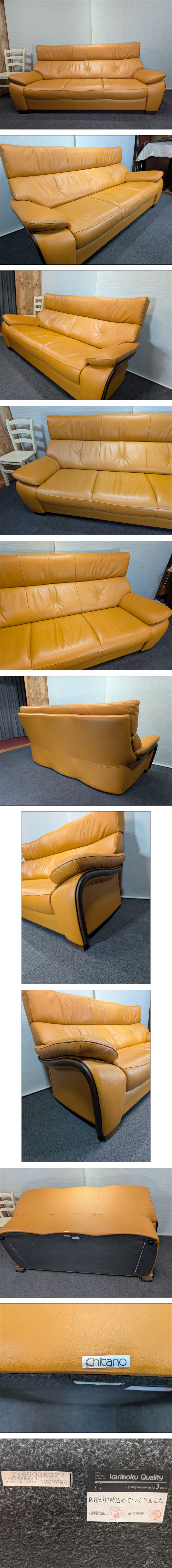 ■極美品■ カリモク Chitano チターノ 本革 3人掛けソファ 3Pソファ Z16503 モダン リビング 幅198cm ■引取歓迎■静岡県裾野市■ | |||