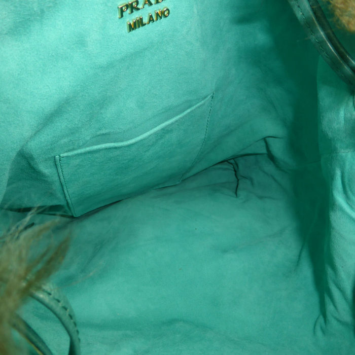 | プラダのフェイクファーを使用したショルダーバッグ。 フリンジもファーでデザインされた可愛らしいデザイン。 ハンドルはシングルで、肩掛けに、ダブルで手持ちにとシーンやスタイルに合わせてお使いいただけます。 A4サイズもスッキリ収まる程よいサイズは普段使いにもピッタリ。 秋冬のアイテムとしておススメです。 |