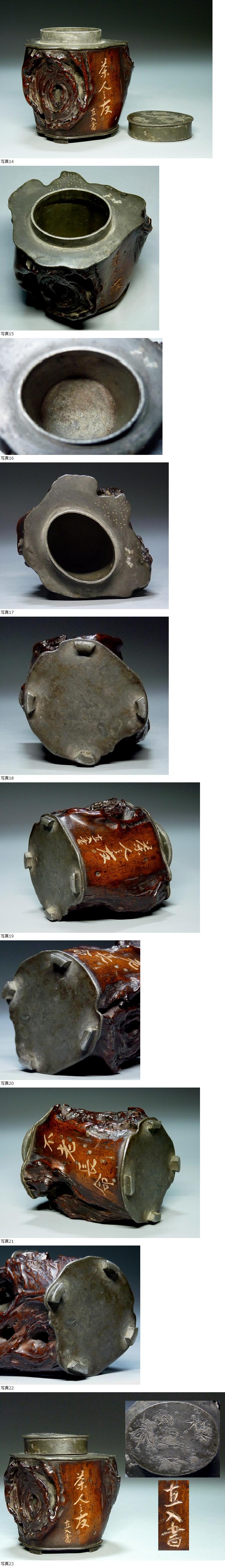 | 【夢たま】老舗旧蔵!唐木 古錫細工 直入 刻 漢詩松竹梅茶入れ/煎茶道具 唐物 茶心壺 時代物☆ サイズ高さ約10,8㎝。幅約10,5㎝。奥行約9,2㎝。重さ約520g。 【商品説明】:老舗旧蔵!唐木 古錫細工 直入 刻 漢詩松竹梅茶入れの出品です。御覧のような老舗旅館の うぶ品になります。細工の良い時代物の茶入れです。この機会に是非お求めください。宜しく御願い致します。 【状態】:経年による薄汚れあり、スレがあり、錫の時代の変色があり、使用感がありますが、 大きな傷みなどもなく、状態は良好と言えます。時代経過による前記傷みはご了承ください。 |