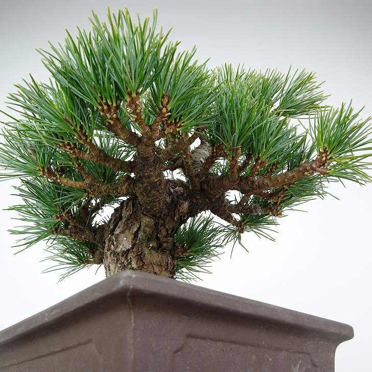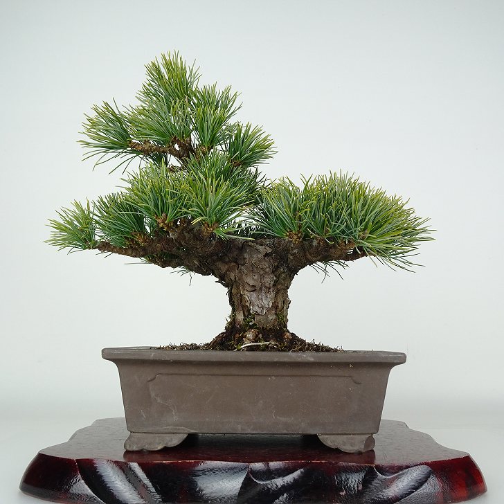 | ■植物ですので撮影時期や季節によって剪定などの手入れにより写真から変化がございます。撮影日をご確認のうえ、ご注文ください。 【五葉松盆栽】 日本固有のマツであり、平安時代から観賞用として神社仏閣などの庭園に植栽されています。銀色がかった葉が美しく成長が遅い上、木質が柔軟で枝を曲げやすいため、盆栽に使われることも多い。樹皮は暗灰色で、老木になると裂片がうろこ状に剥がれ落ちます。 |