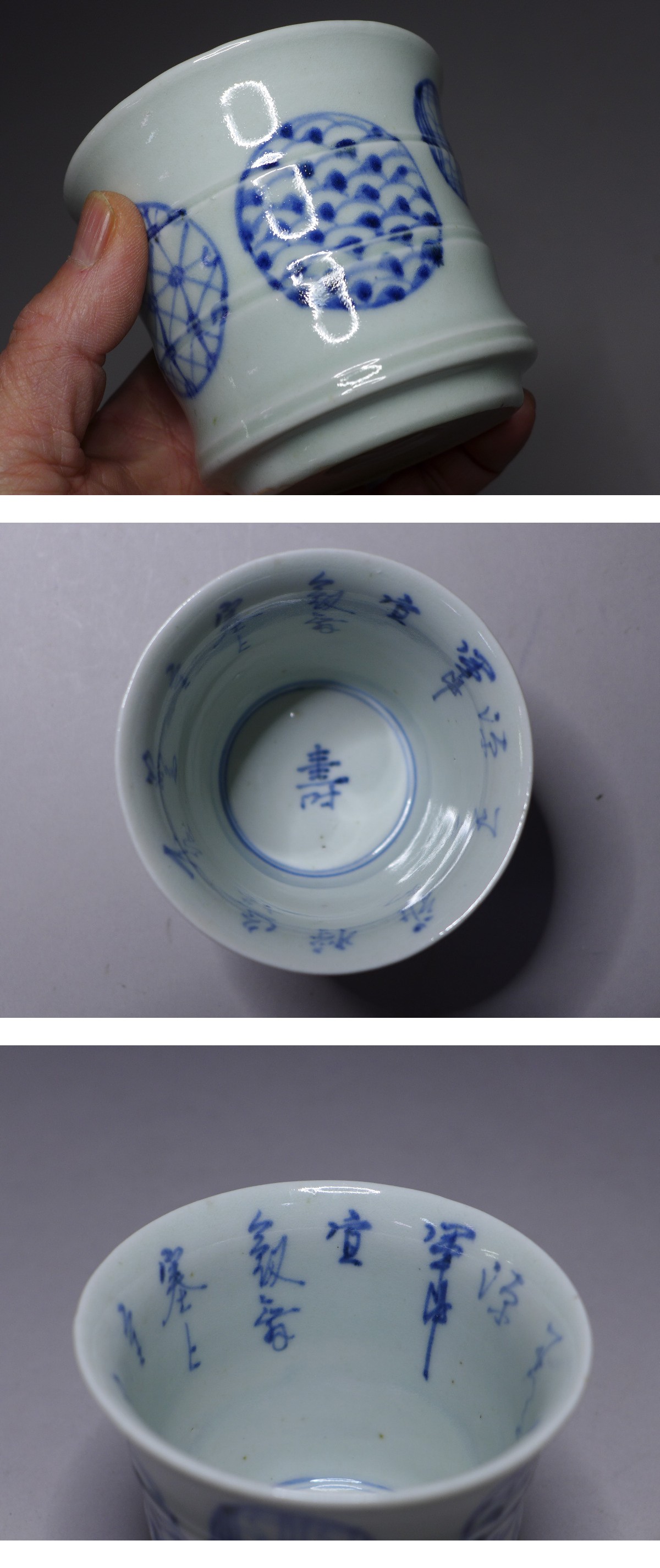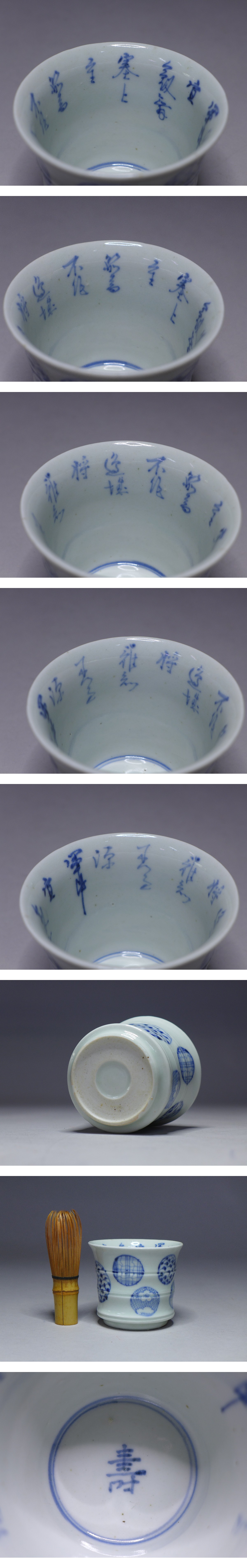 蕎麦猪口⑦ 『古伊万里染付丸紋漢詩蕎麦猪口』です。高:約8・2cm。口径:約9・4cm。無疵状態良好。状態は画像参照でお願いします。※他にも蕎麦猪口出品中です。是非ご覧ください。★★★★★★★★★★★★★★★★★★★★★★★★★最近、悪質な入札者が多く非常に迷惑をしております。新規IDや「非常に悪い・悪い」の評価の多い方の入札はお断りさせて頂きます。 仮に入札があった場合でも、発見次第入札を削除させて頂く場合がございます。
