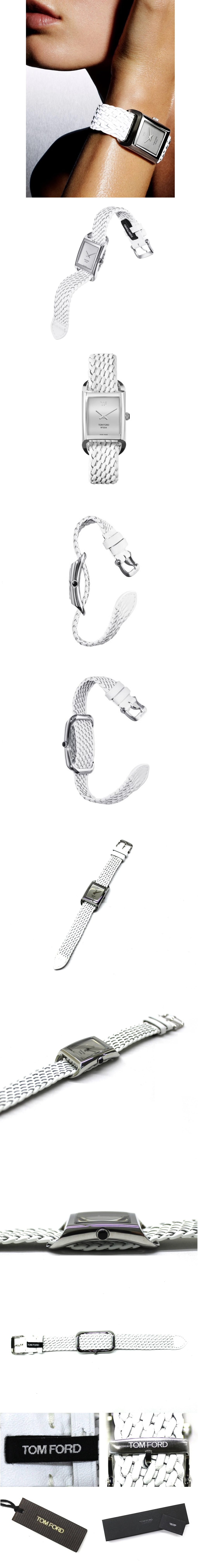 24万新品◆TOMFORD トムフォード レクタングル腕時計 N.004 スティール クロームダイヤル メッシュレザーベルト 白