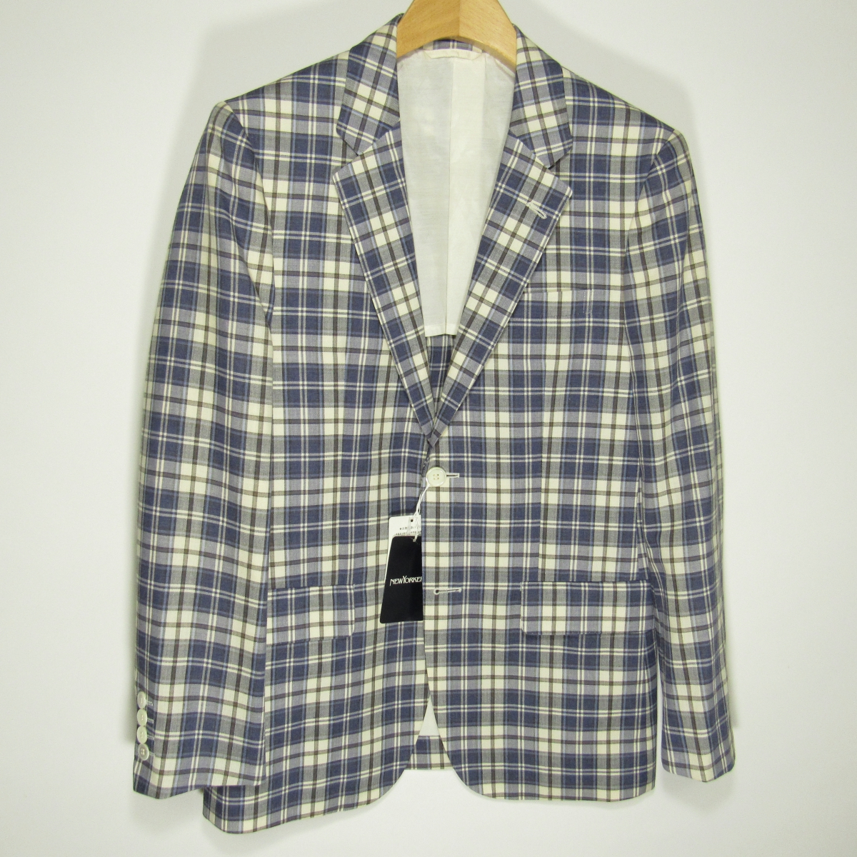 | 日本を代表するトラッドブランド「NEW YORKER」 生地は薄手で清涼感のある麻混の春夏素材です。 裏地は背抜き、肩にはパッドなしで芯地のみ使用の軽快な仕立てとなっております。 メンズ・麻混・チェック・テーラードジャケット/春夏 型番:11-19-8212 / 定価53,000円+税 シングル2つボタン/センターベント/裏地-背抜き/肩パッドなし/袖口4つボタン・開き見せ |