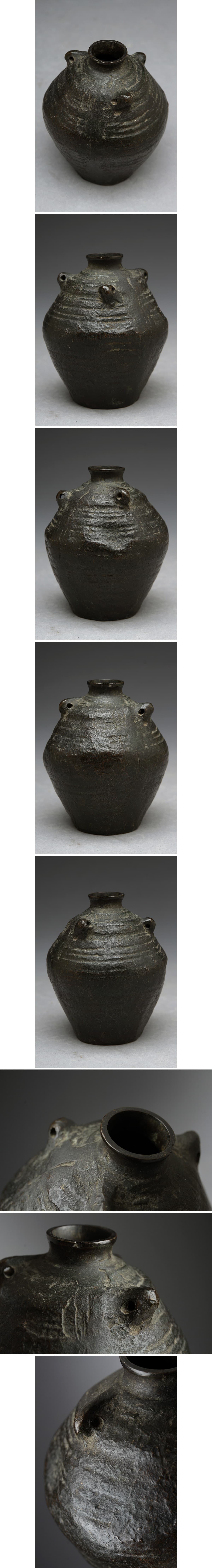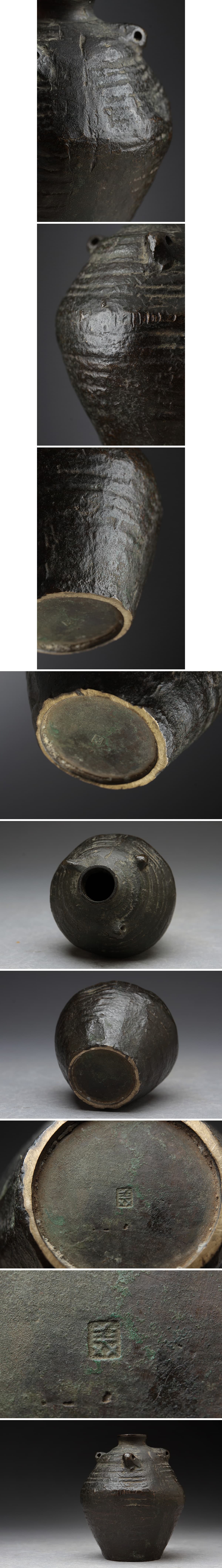 | ◆ 朝鮮古美術【李王家美術工場製/美印】古銅 唐銅 三耳小壷/油壷/水滴 高7.8cm 重335g・古銅小壺・銅三系小罐 後期 朝鮮金工 ◆