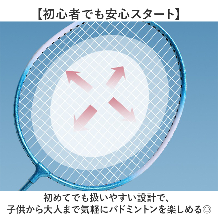 | 商品説明 | ・・【バドミントンラケットセット】 ・家族で楽しめる、初心者にぴったりのラケット2本組〇 ・【初心者でも安心スタート】 ・初めてでも扱いやすい設計で、子供から大人まで気軽にバドミントンを楽しめる◎ ・【収納ケース付きで便利】 ・専用のラケットバッグが付属していて、持ち運びも保管もスマートにできる嬉しい仕様! ・【軽量で扱いやすい】 ・コンパクトに収納できて持ち運びやすいから、どこでも気軽にスポーツを楽しめるアイテム。 |